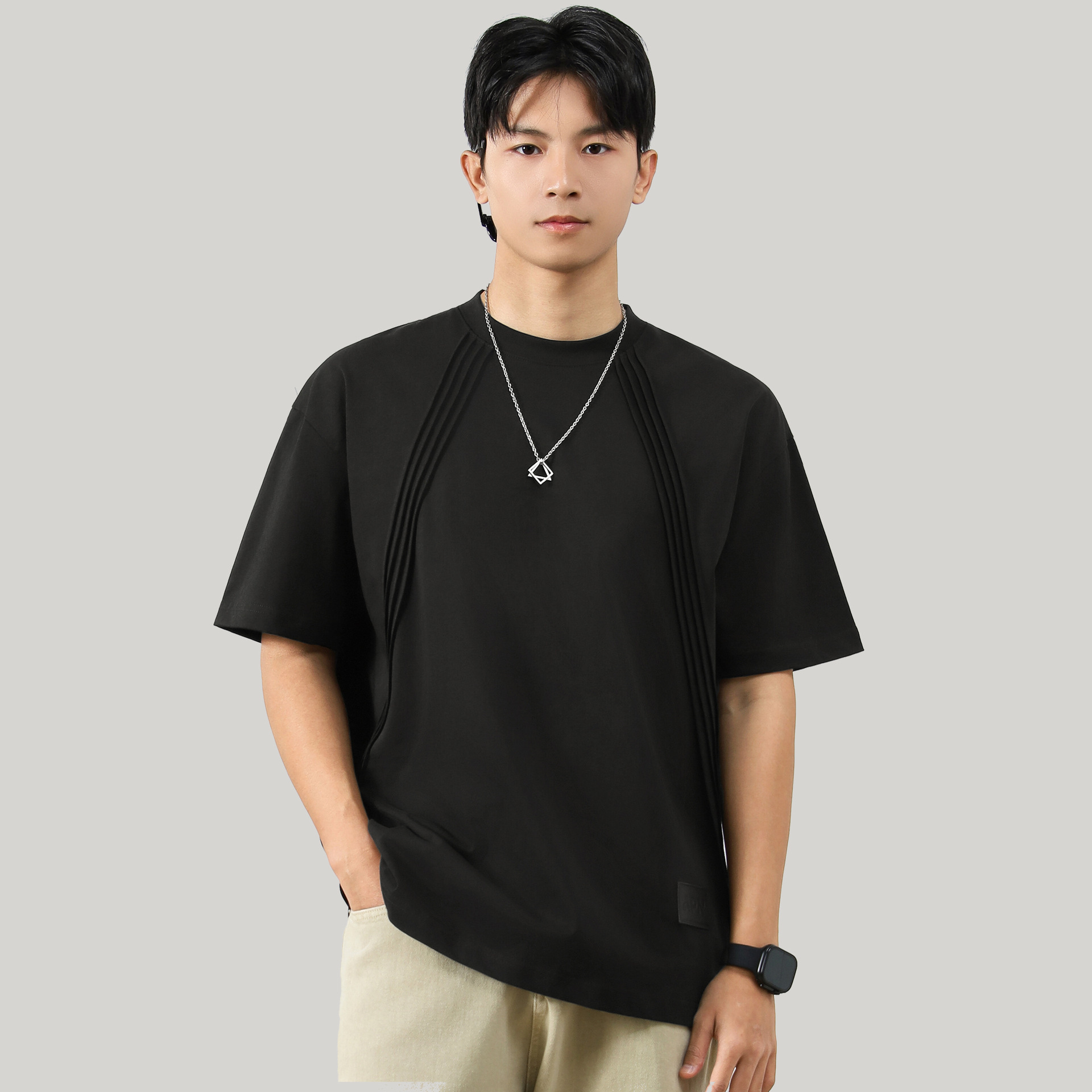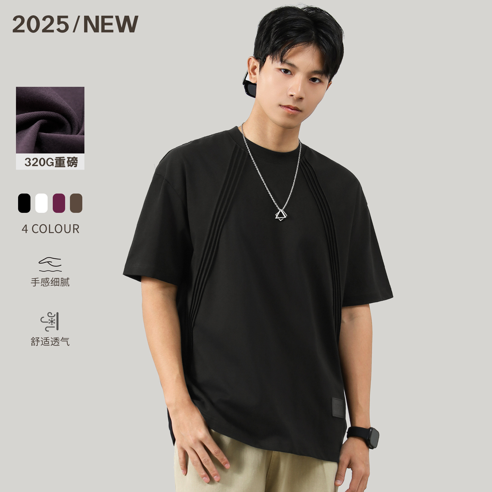 2025年夏季新款时尚休闲简约经典潮流百搭帅气纯色短袖T恤上衣ins