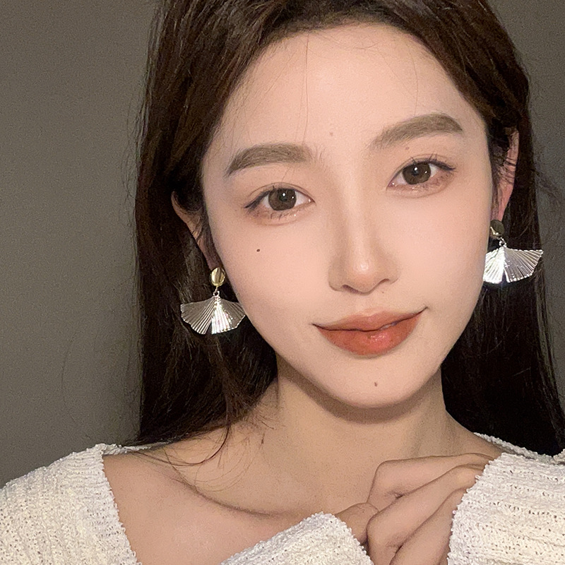 法式金属银杏叶耳环女小众设计感金属扇形耳钉秋冬新款冷淡风耳饰
