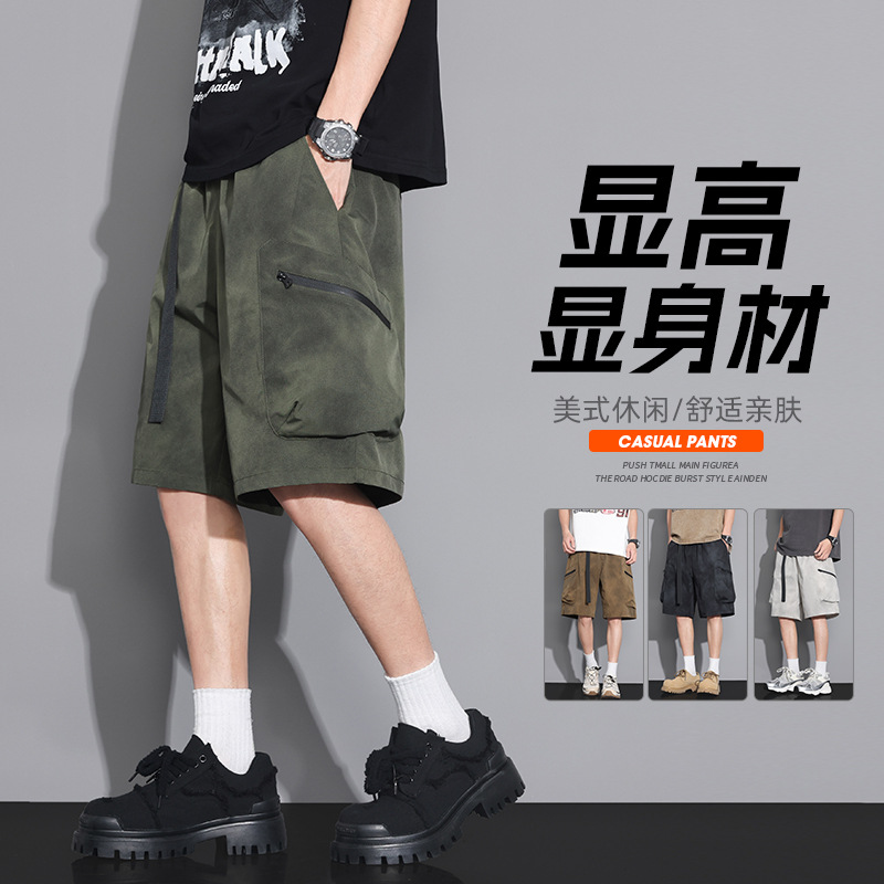 冰丝工装短裤男夏季薄款速干休闲外穿中裤子沙滩五分裤