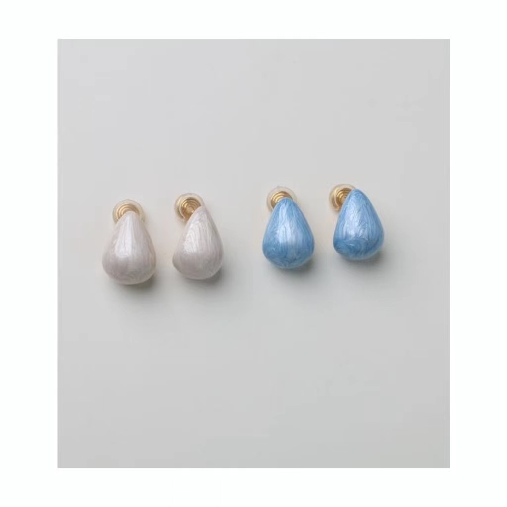 奶油色蓝色水滴滴釉蚊香盘耳夹无耳洞高级感轻奢通勤耳饰女
