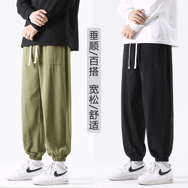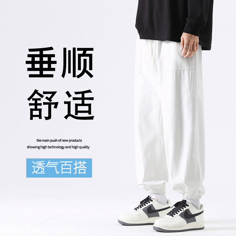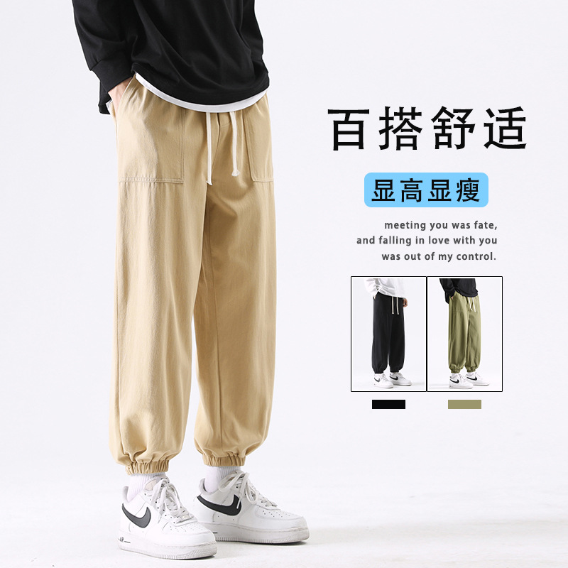 2025夏季轻奢冰丝裤子轻薄工装运动裤男士休闲长裤宽松束脚男潮