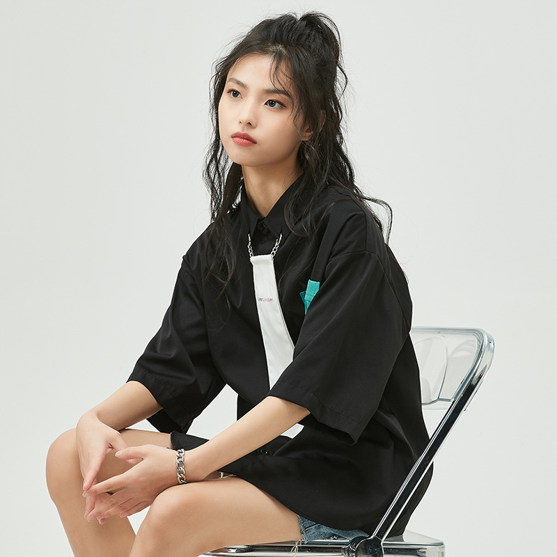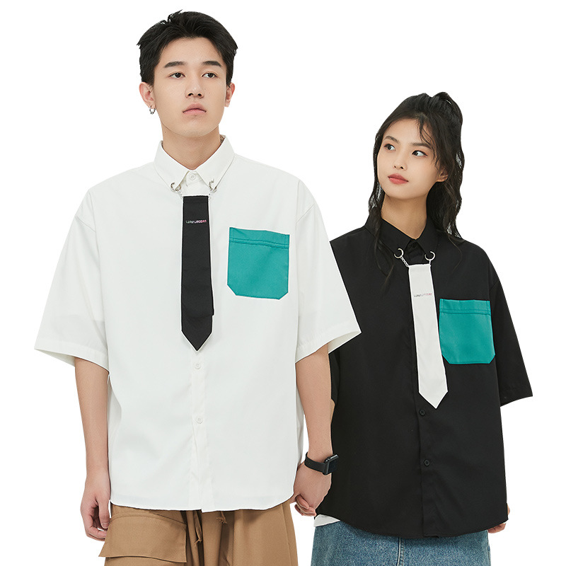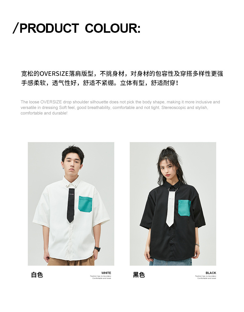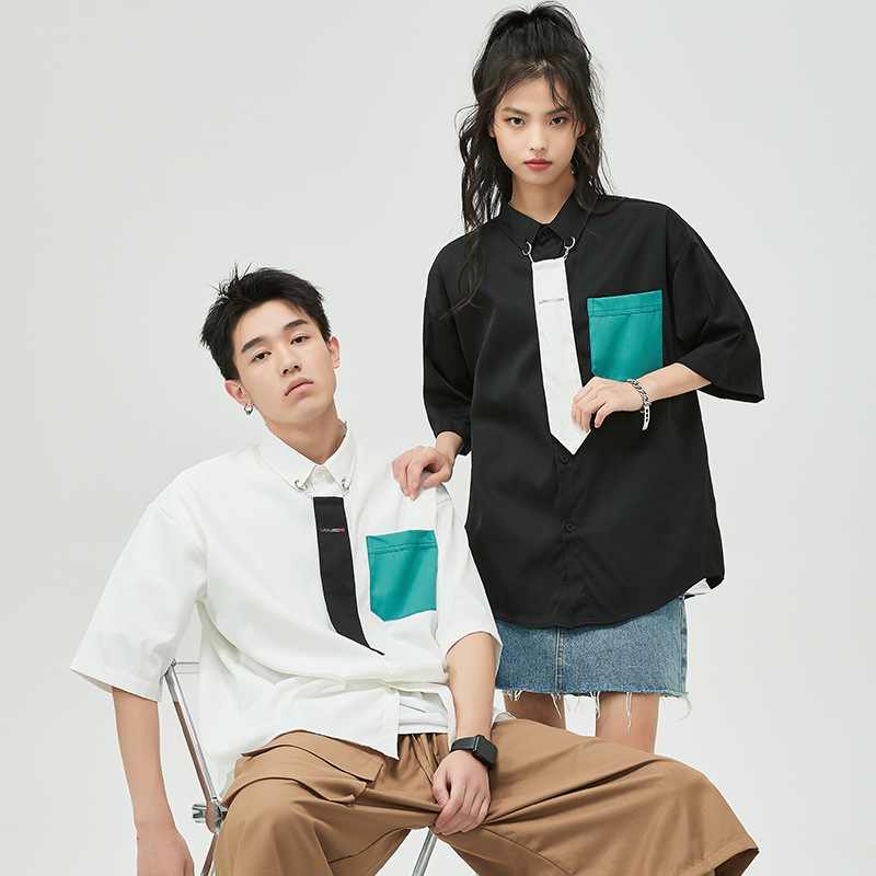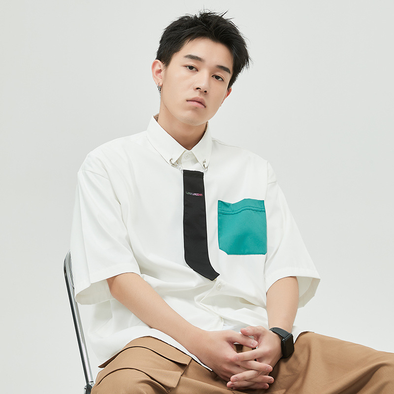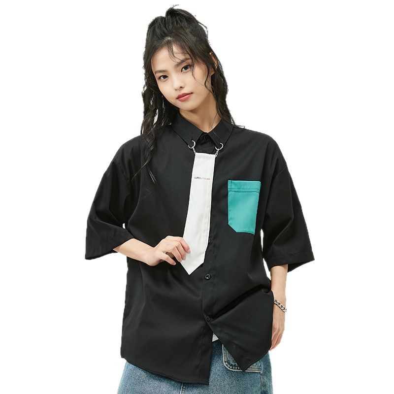 日系潮牌短袖衬衫男士夏季薄款翻领潮流休闲宽松百搭衬衣男款t恤