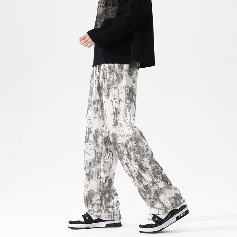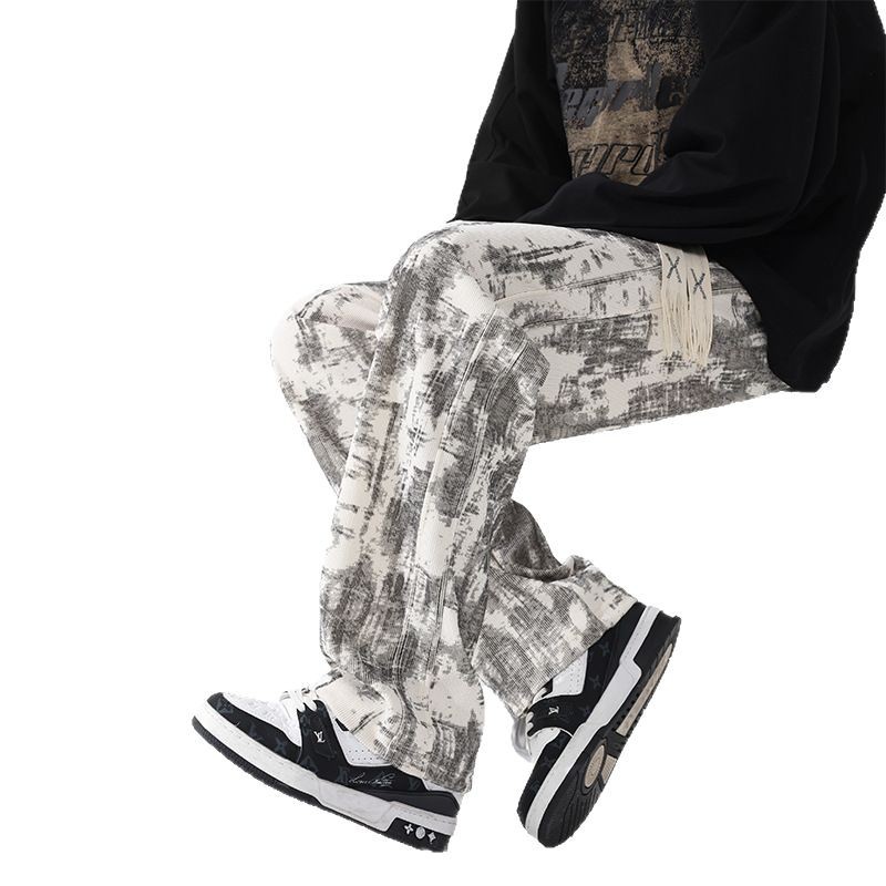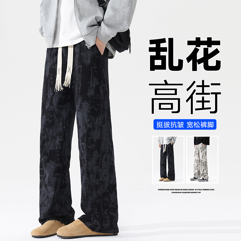 25新品潮牌裤男春季重磅美式高街运动裤春秋款满印潮牌垂感直筒休