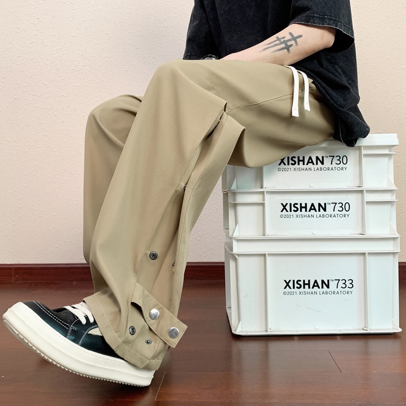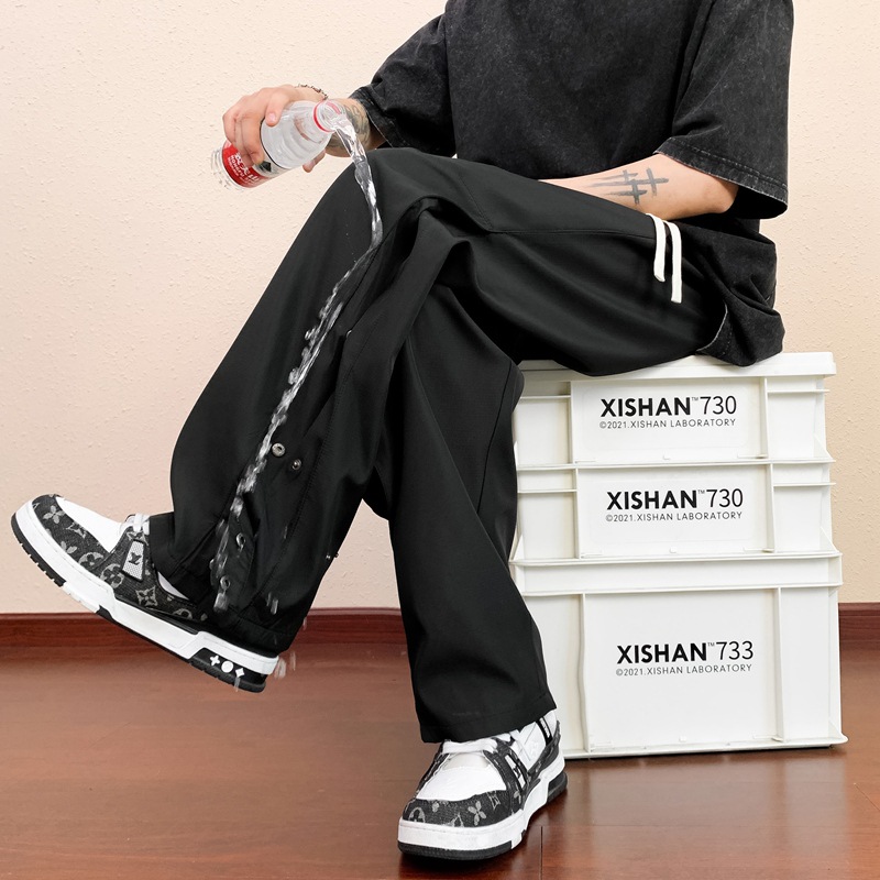 直筒冰丝裤男生春季凉感透气休闲裤男2025新款青少年黑色百搭运动