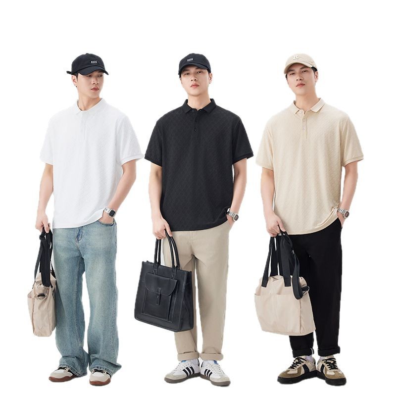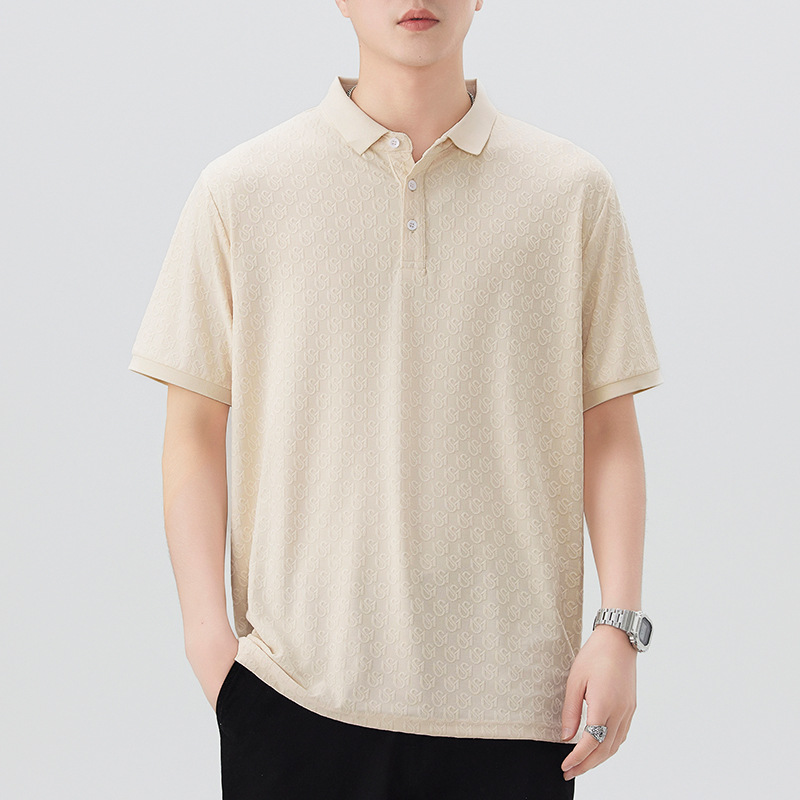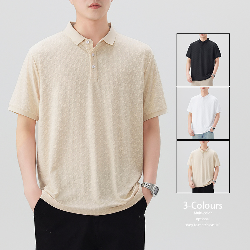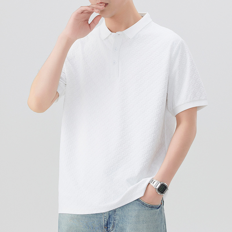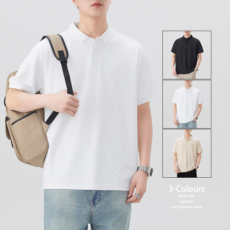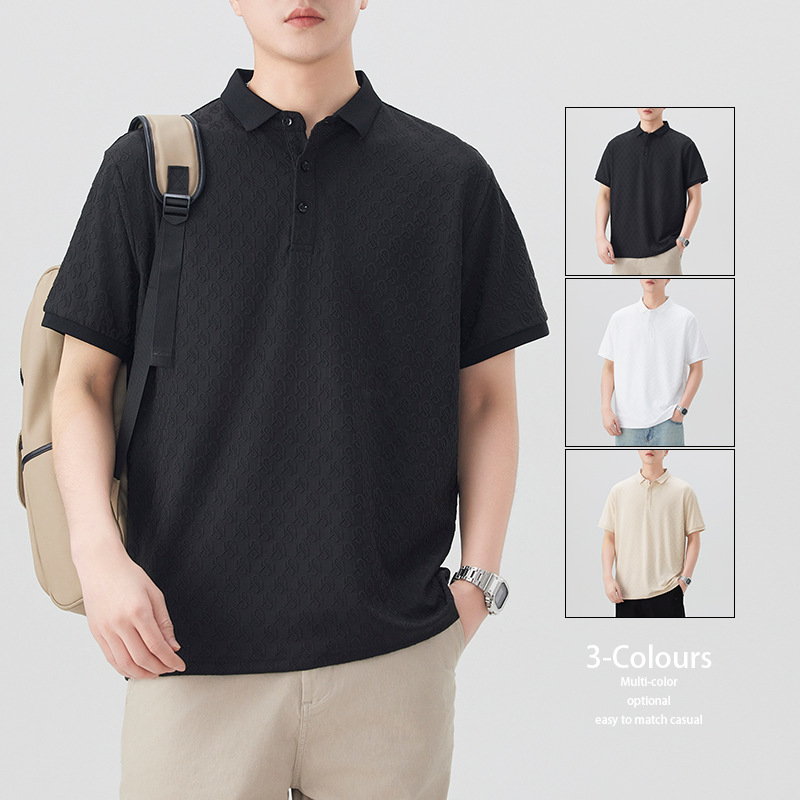 2025时尚轻奢提花休闲POLO衫夏款舒适透气青年修身翻领短袖T恤男