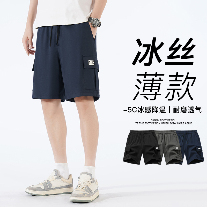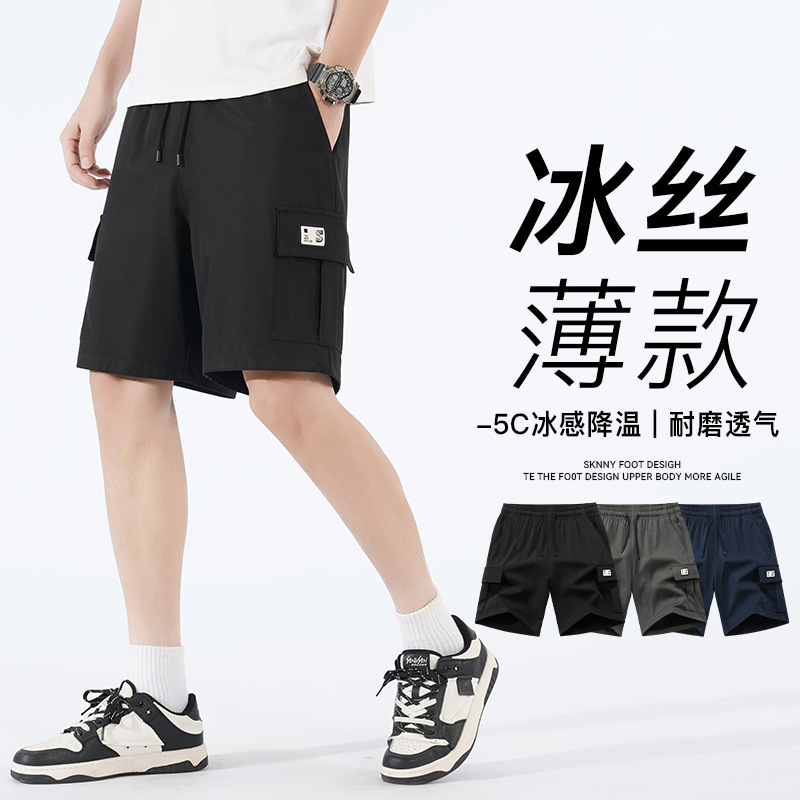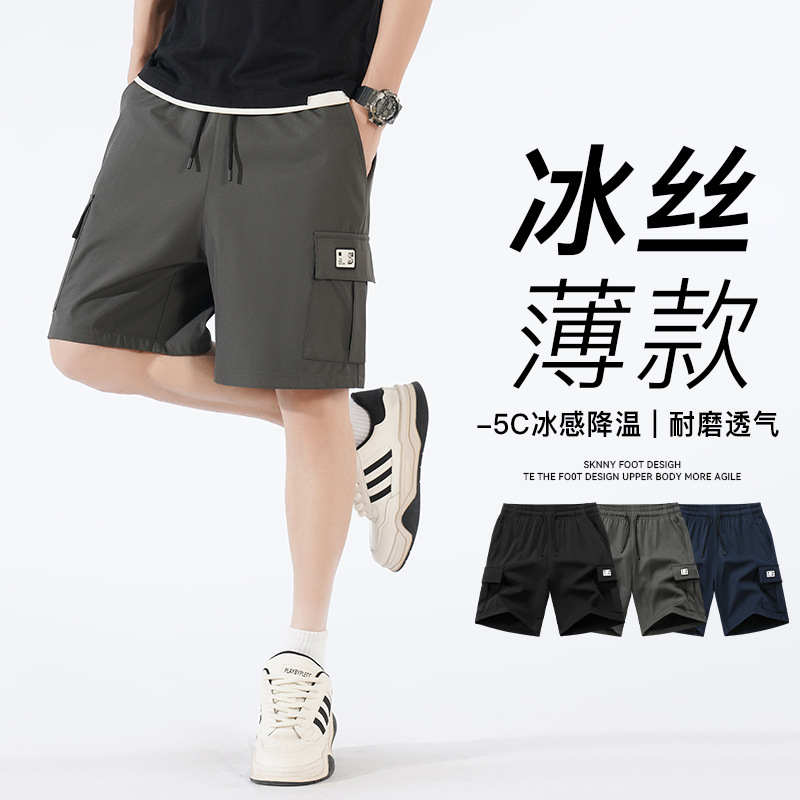 美式工装短裤男夏季2025新款潮牌宽松薄款冰丝凉感透气直筒五分裤