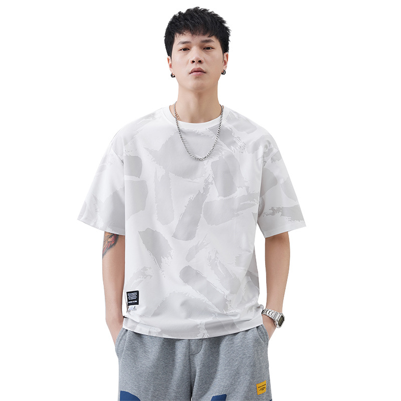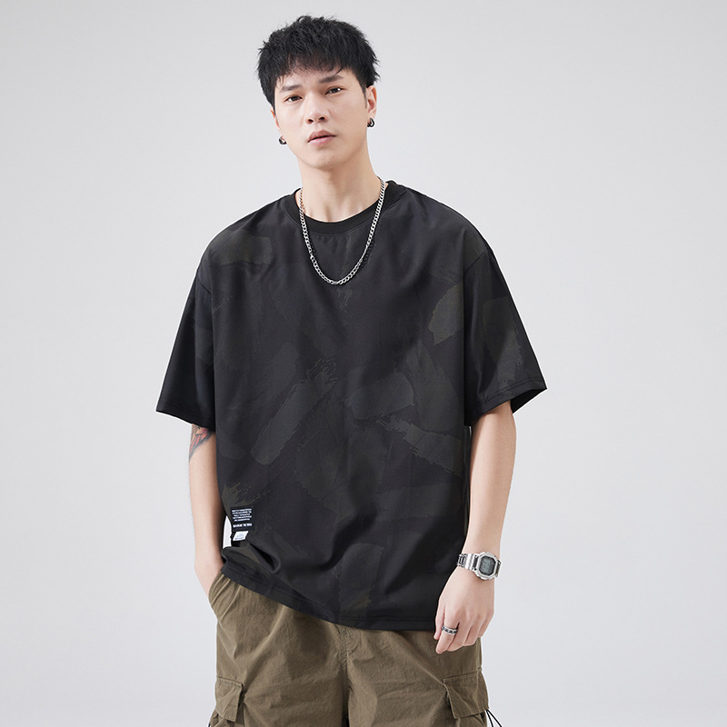 夏季短袖t恤男士2025新款宽松潮牌休闲创意个性小众圆领半袖体恤