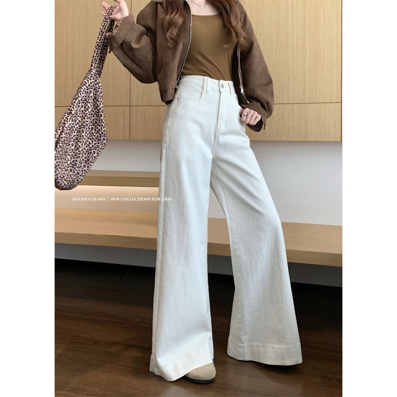 美式复古水洗牛仔裤女阔腿高腰宽松显瘦垂感拖地长裤