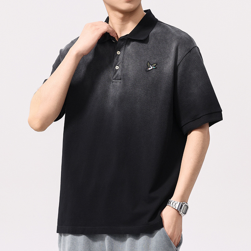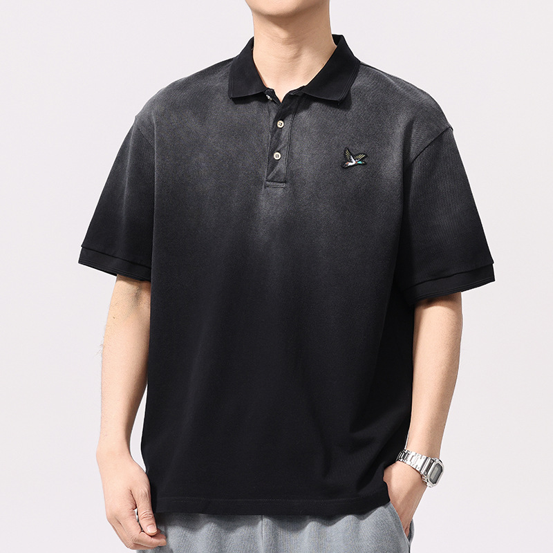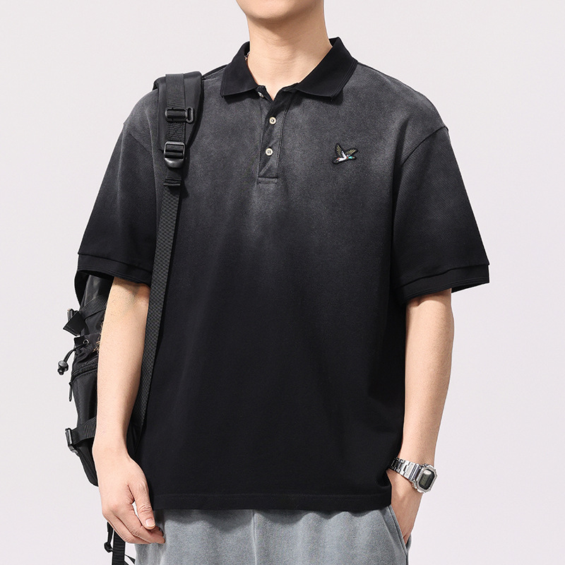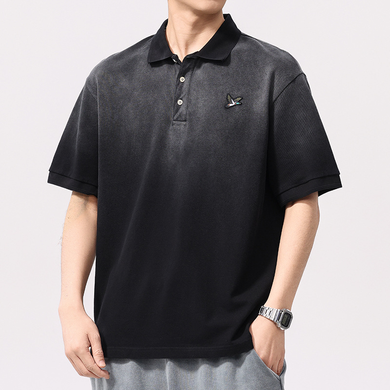 美式复古重磅男士POLO衫2025夏季潮流高级感渐变水洗大码翻领短袖