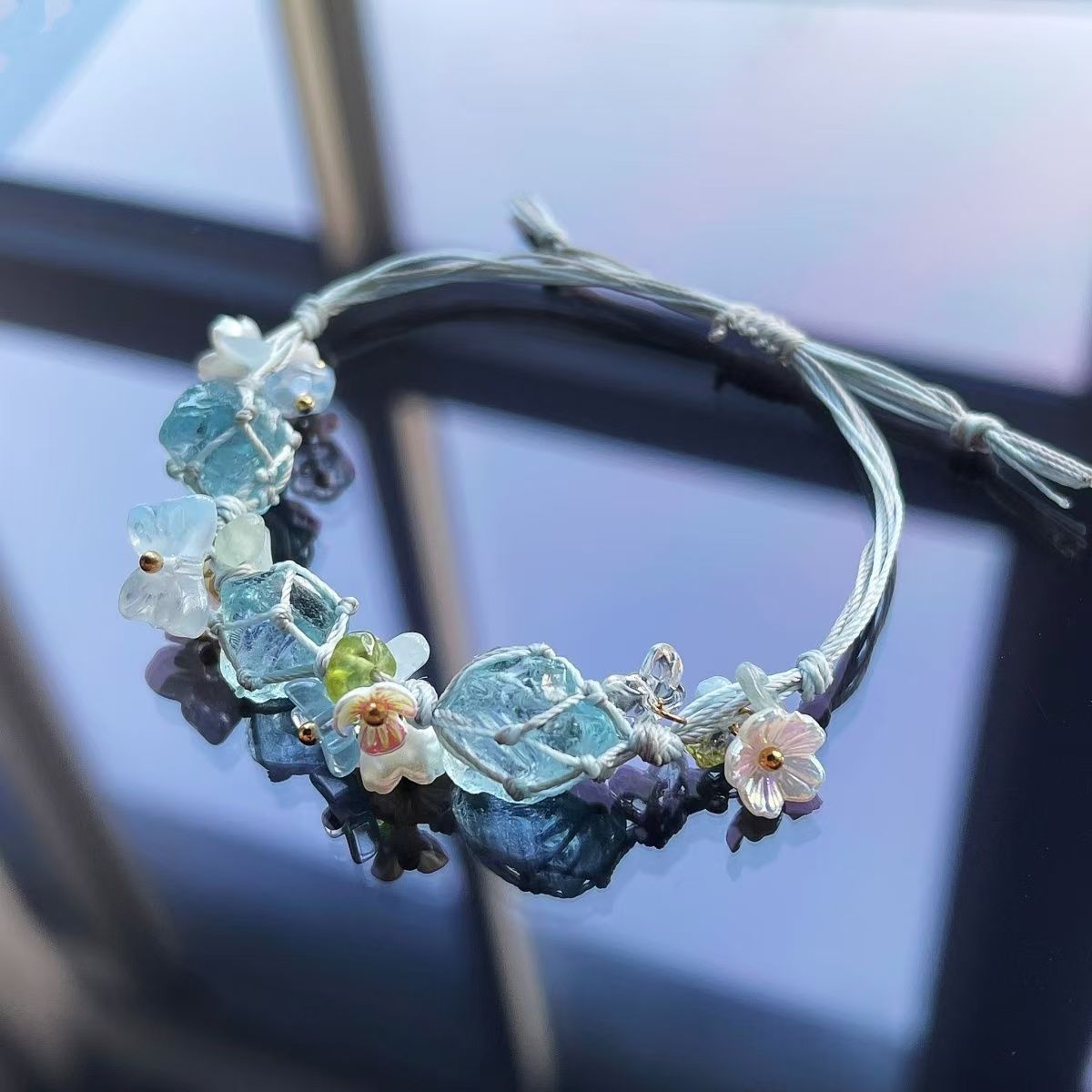 原创设计合成水晶原石编织手链一汪“清泉”薄荷蓝蓝琉璃手绳