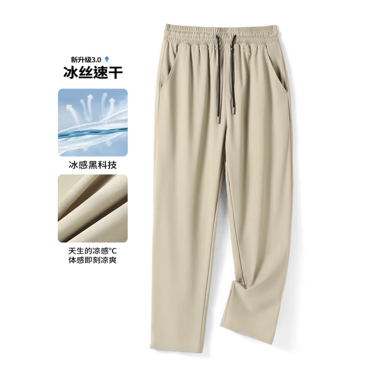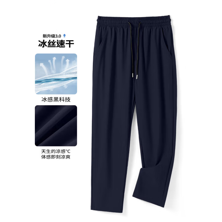 Baleno休闲裤男夏季长裤男士简约潮流直筒裤薄款冰丝夏天透气速干裤子男