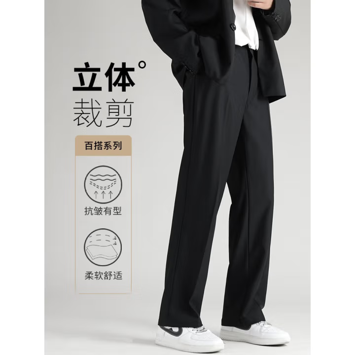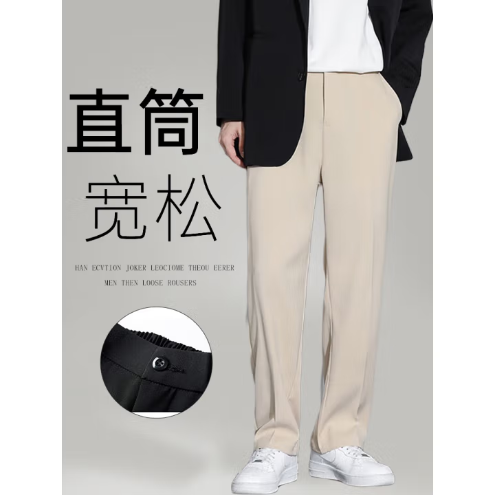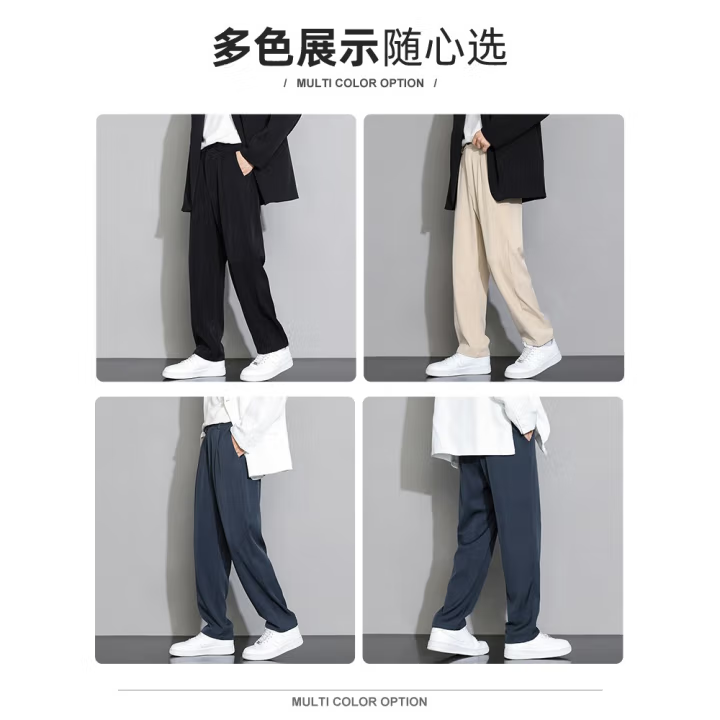 春夏季宽松直筒裤垂坠感休闲裤男潮流冰丝裤子