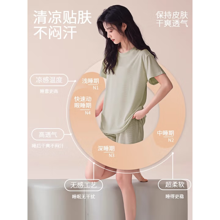 男女士睡衣情侣款夏季薄款短袖短裤可外穿家居套装【冰丝凉感】