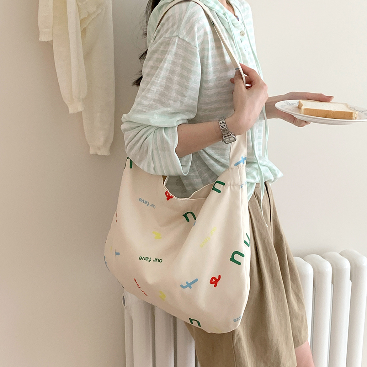 新款休闲百搭布袋清新ins韩版单肩斜挎包大容量托特包学生包