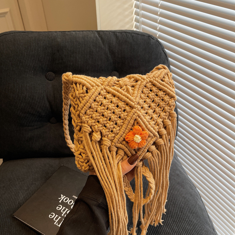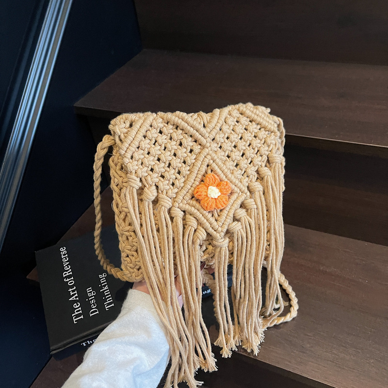 波西米亚流苏编织包包女2025新款网红单肩斜挎包海边度假风沙滩包