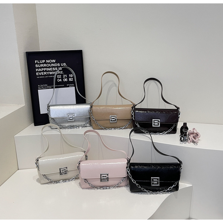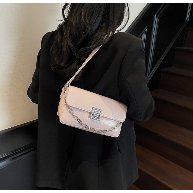 高级感小众链条腋下包包2025油蜡皮新款软皮百搭时尚单肩斜挎小包