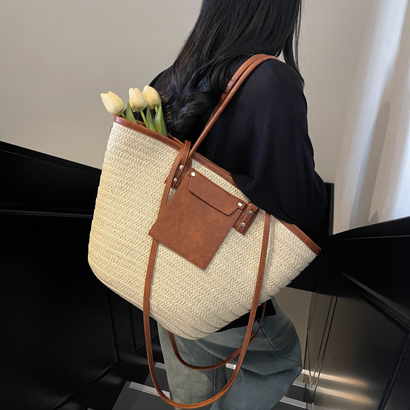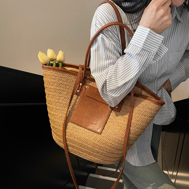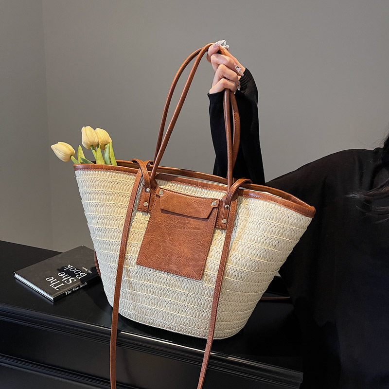 草编包2025夏季新款森系手工编织包大容量沙滩包托特包手提单肩包