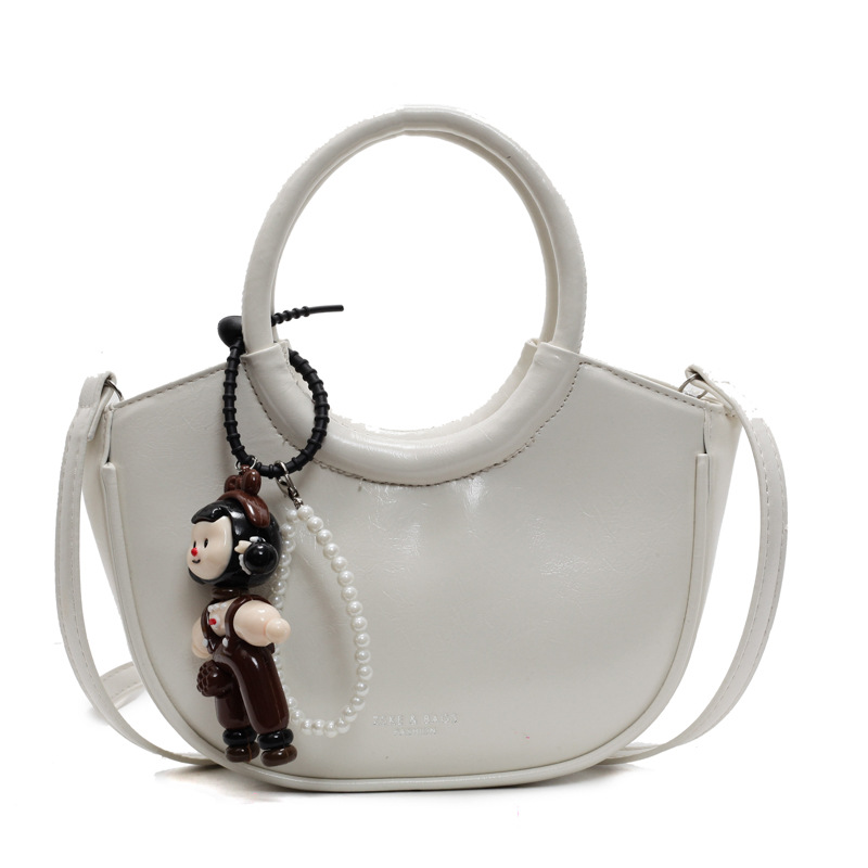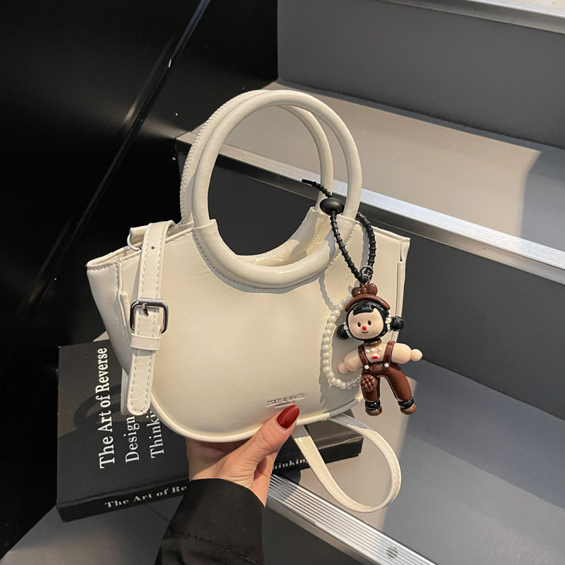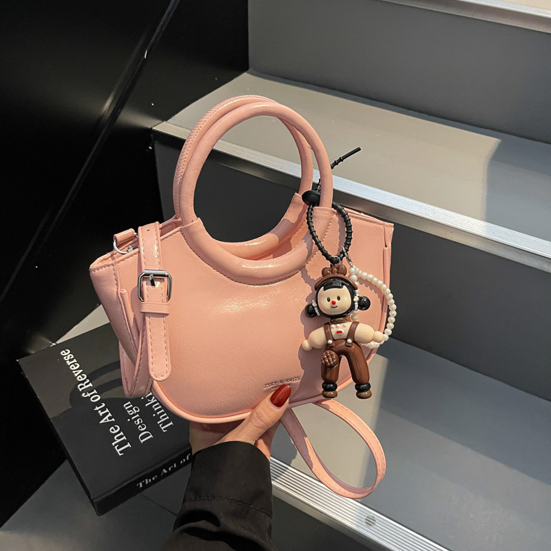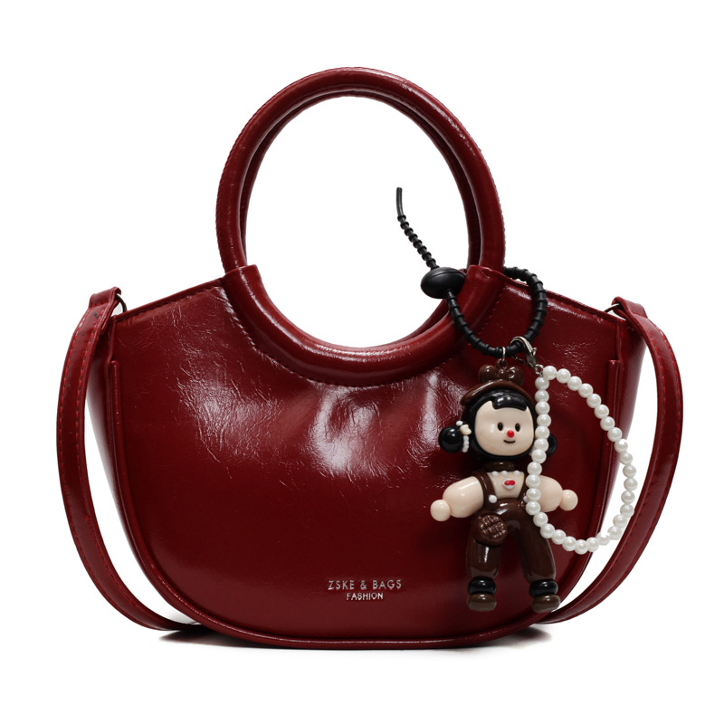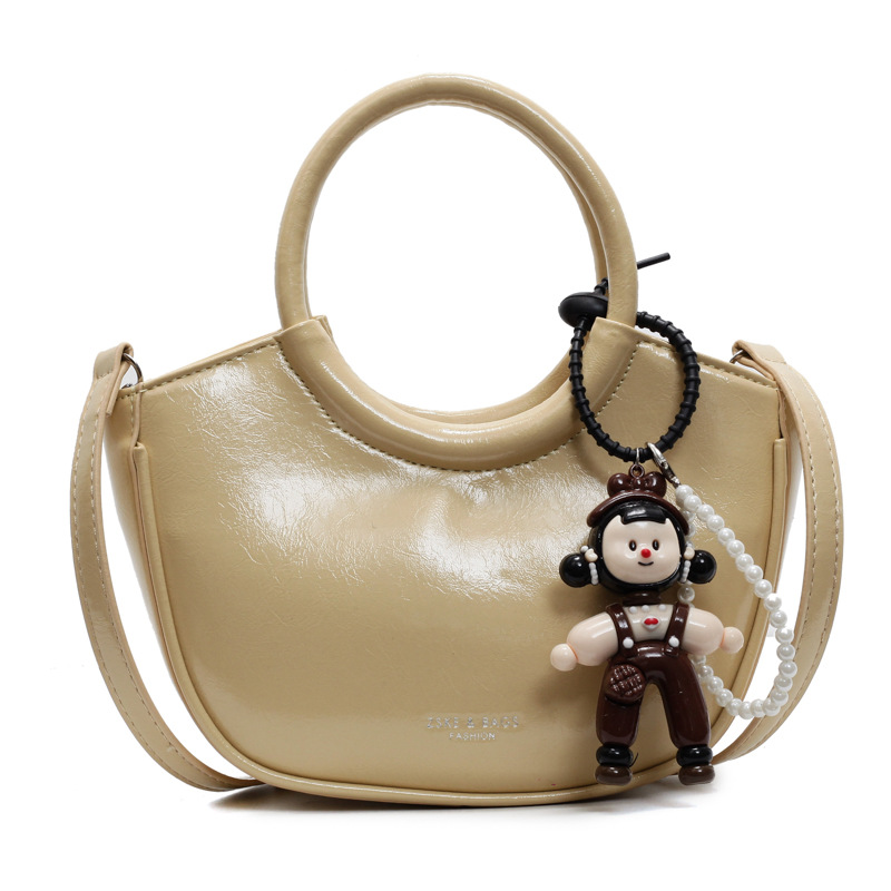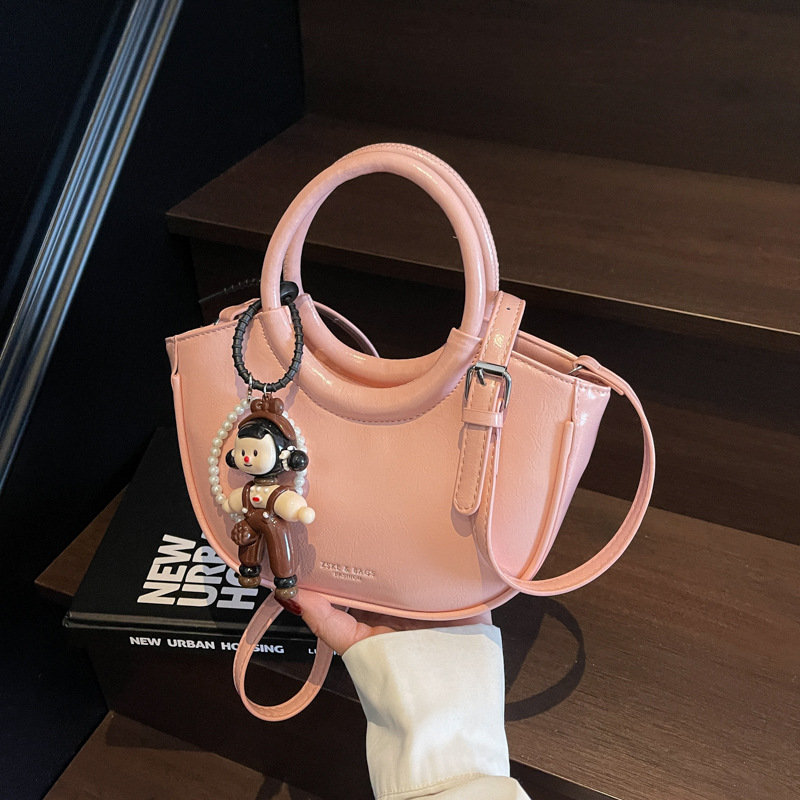 2025时尚新设计休闲油蜡皮手提水桶包包简约百搭纯色气质斜挎女包