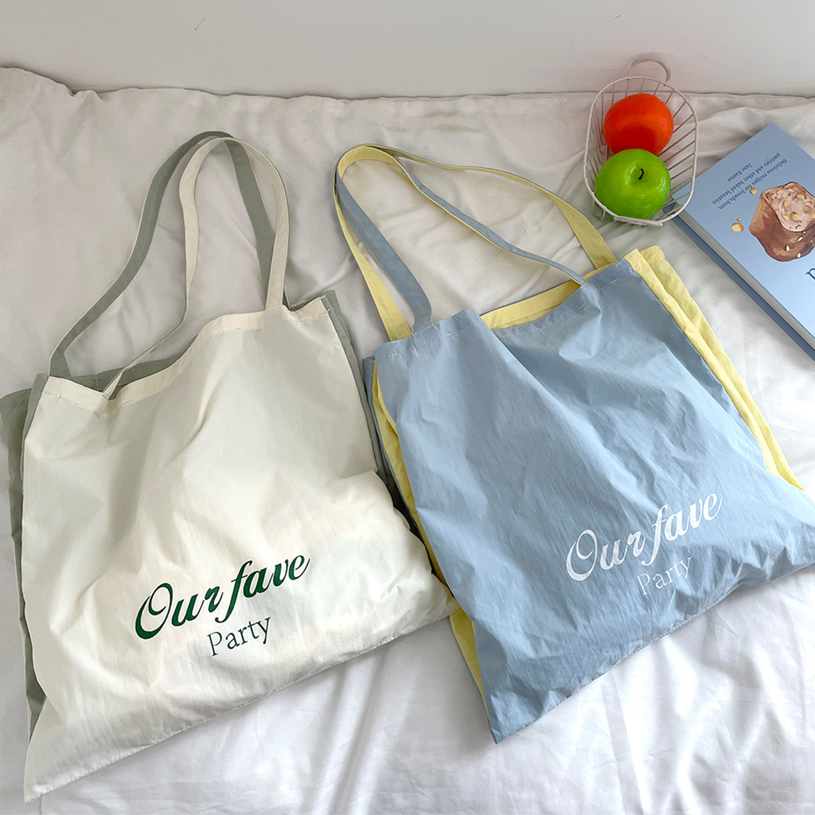 夏日多巴胺撞色单肩包大容量双层包尼龙防水托特包大学生上课书包
