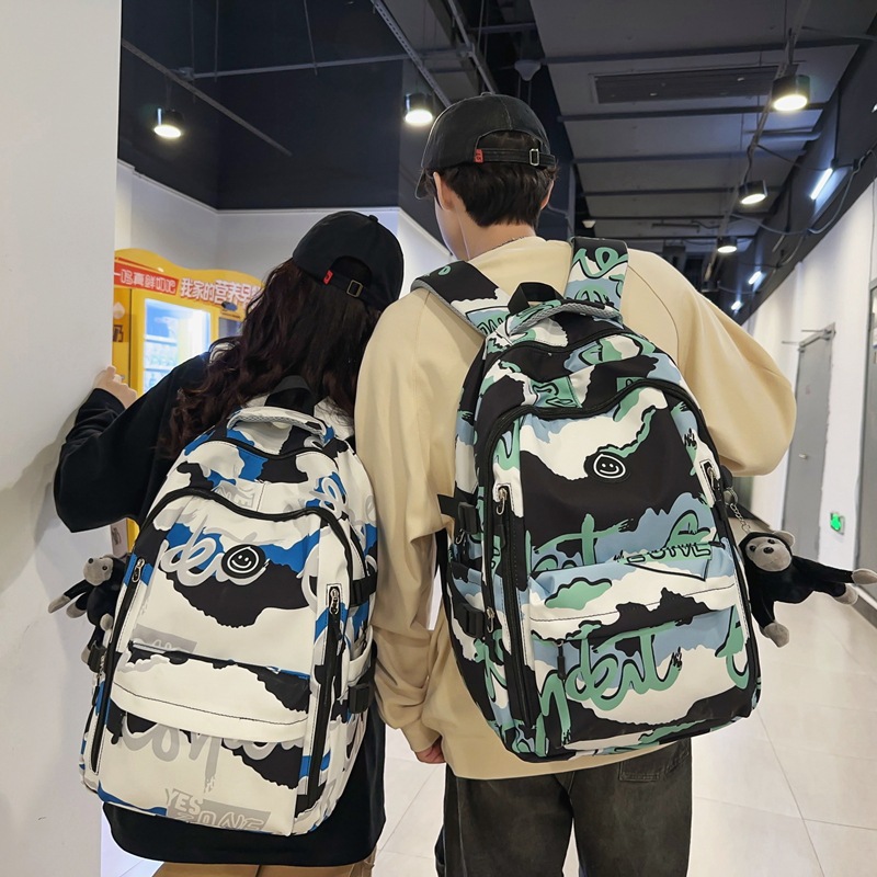 学生书包女新款涂鸦书包大容量双肩包 日系ins原创休闲背包