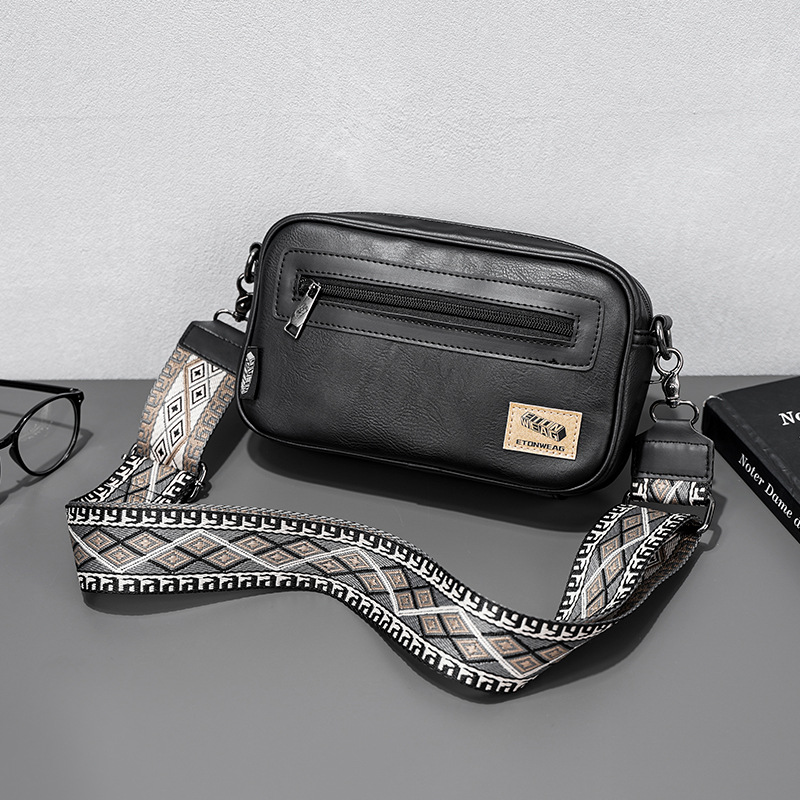 复古男士小方包百搭横款单肩包斜挎包轻商务户外小挎包多口袋男包