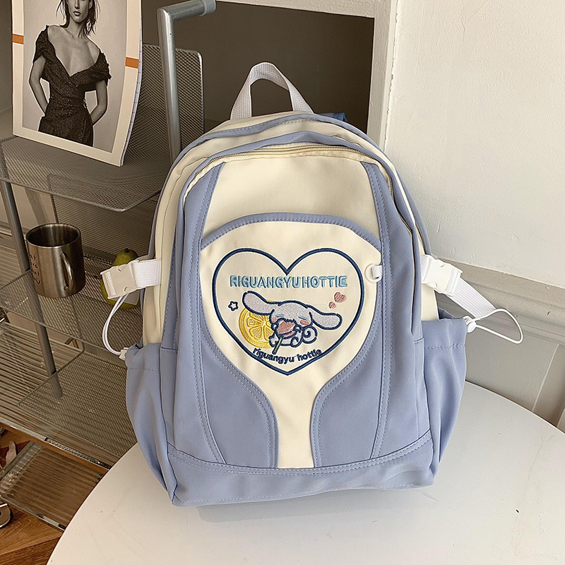 美式复古双肩包女大学生日系高颜值撞色小众背包高中生大容量书包