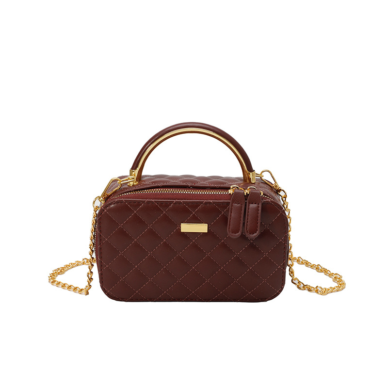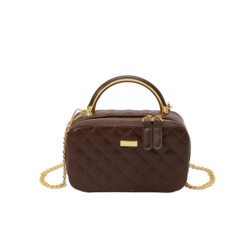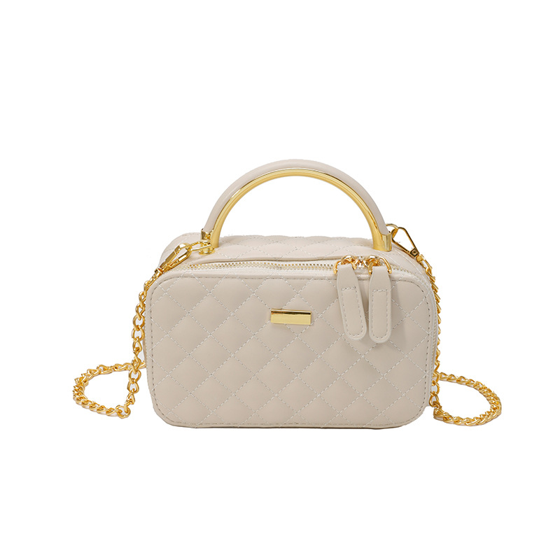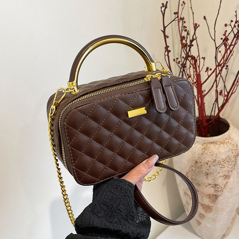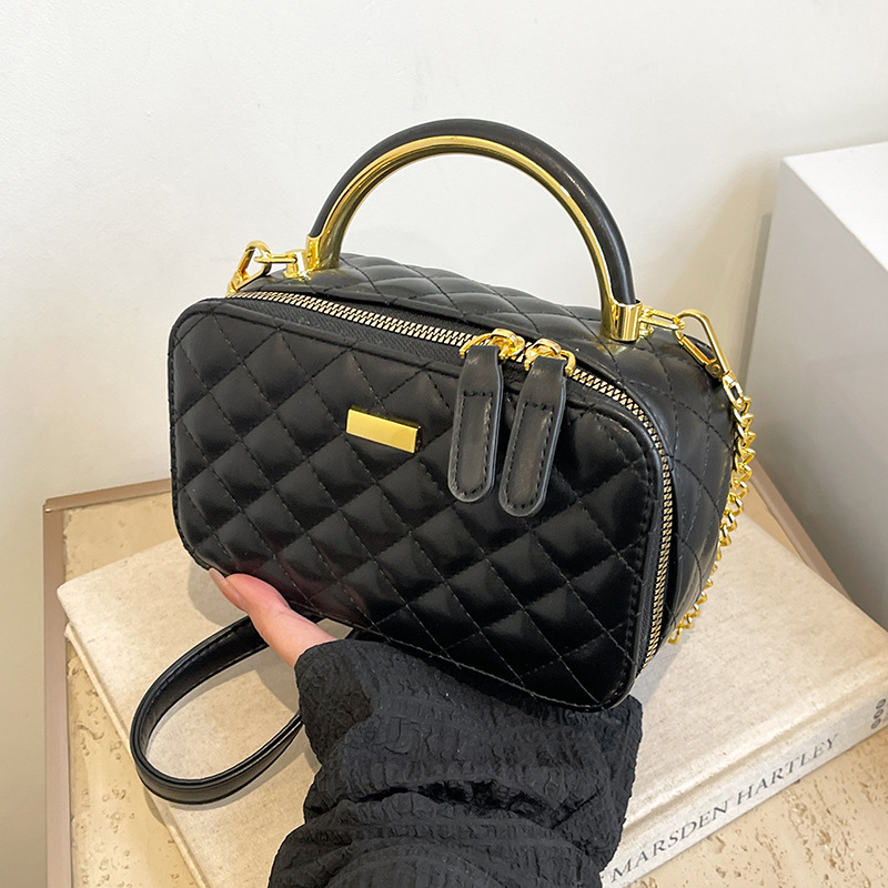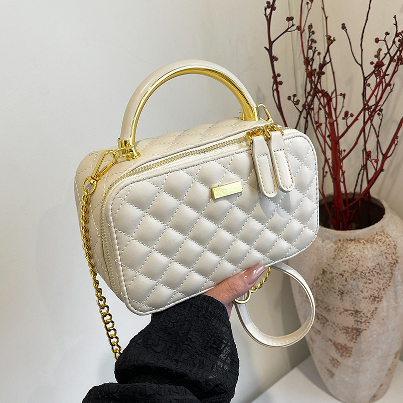 韩版时尚菱格绣线手提单肩包包女包2025新款百搭斜挎包洋气小方包