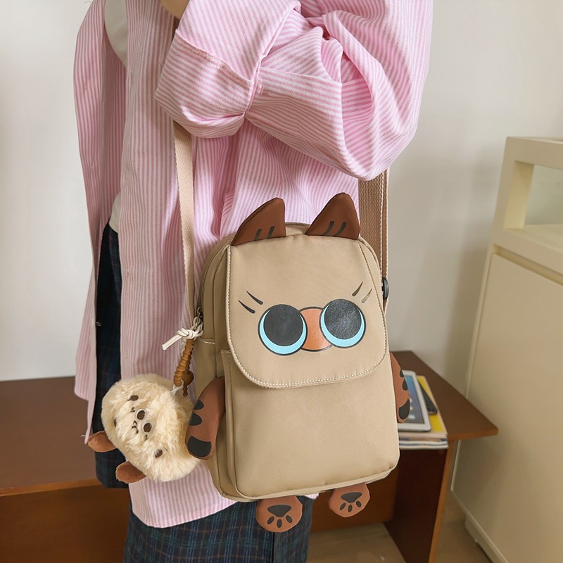 日系ins可爱暹罗猫斜跨小包包女新款学生逛街尼龙单肩手机包