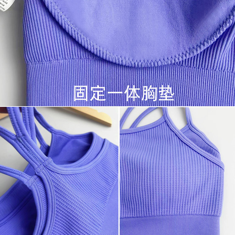 跨境新款细肩带美背假两件运动内衣女防震跑步瑜伽健身服文胸背心