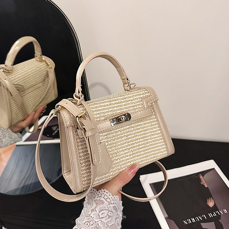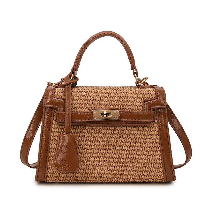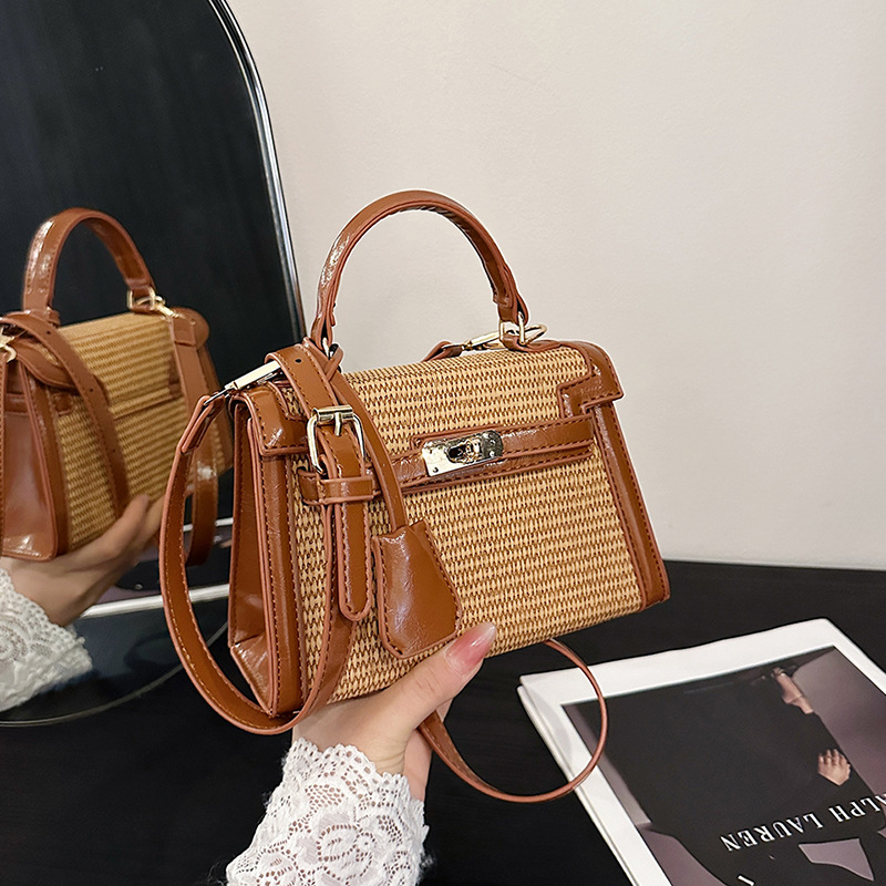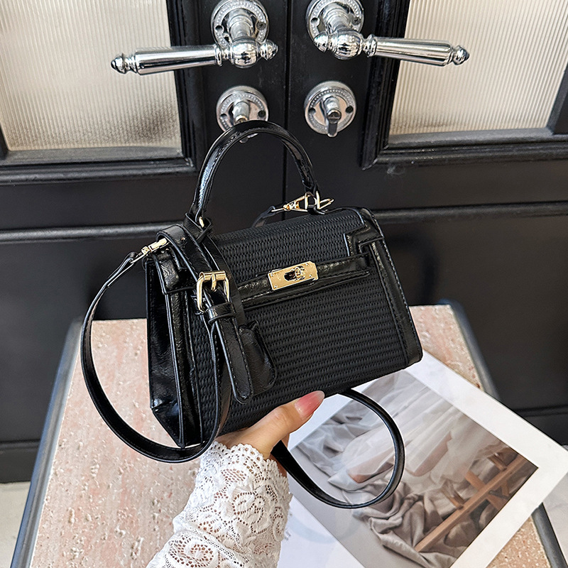 拼接质感手提凯莉包女2025新款休闲百搭单肩包时尚通勤斜挎包女包
