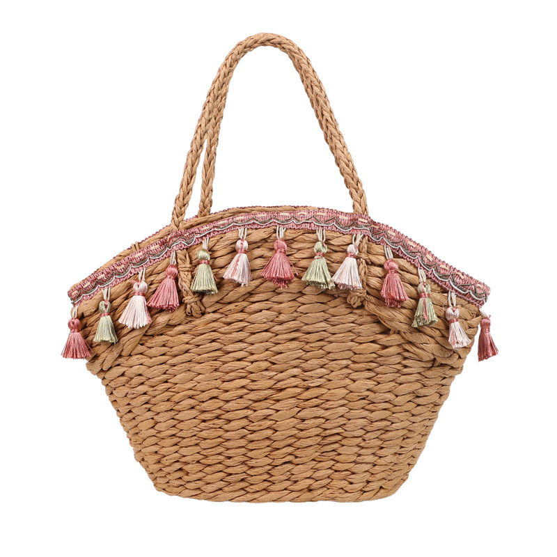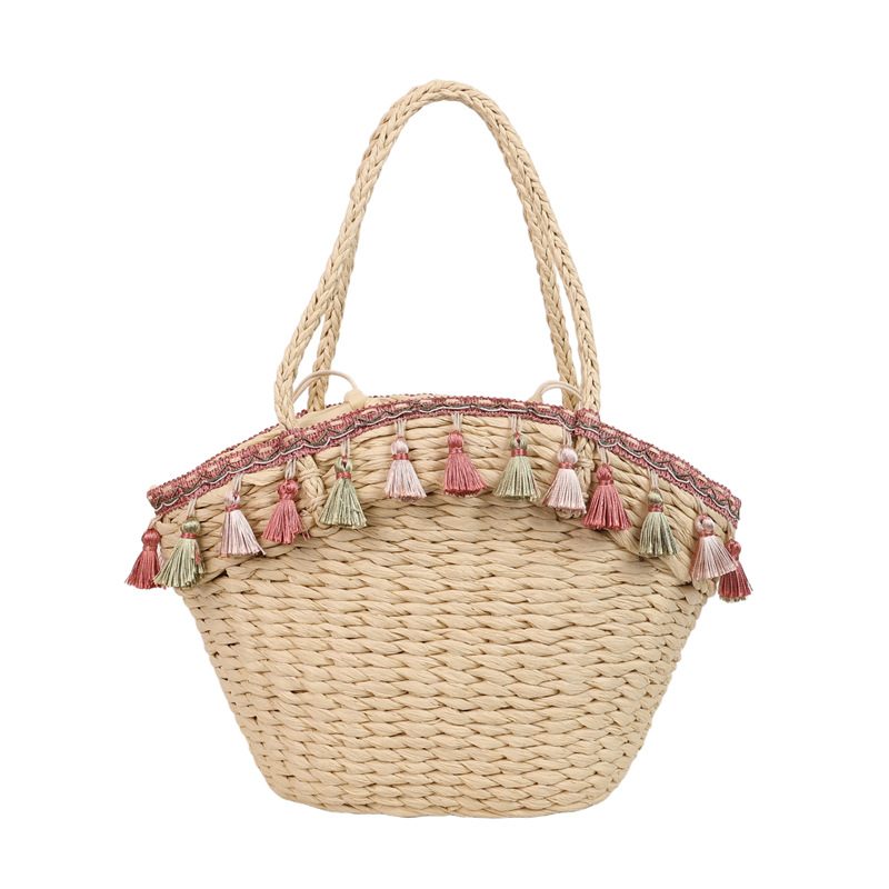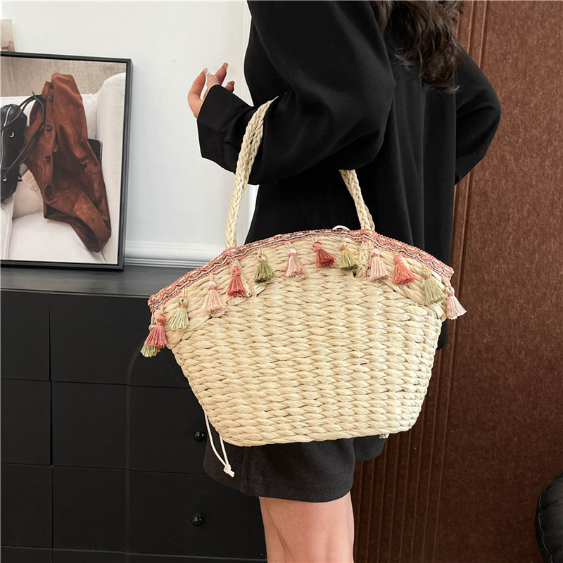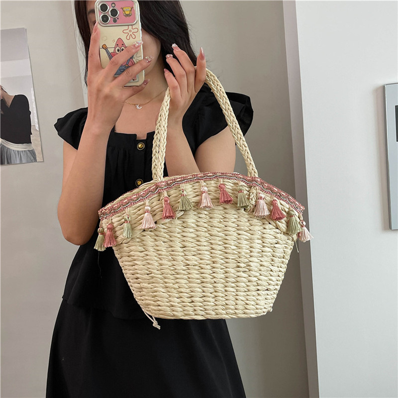 小清新草莓手提草编包新款纯色手拎大容量编织包度假沙滩包菜篮子