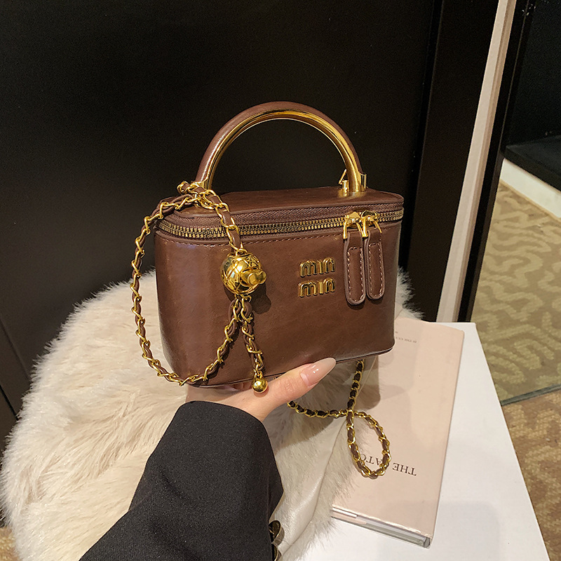 跨境复古手提盒子包包女2025新款轻奢小香风单肩斜挎包洋气链条包