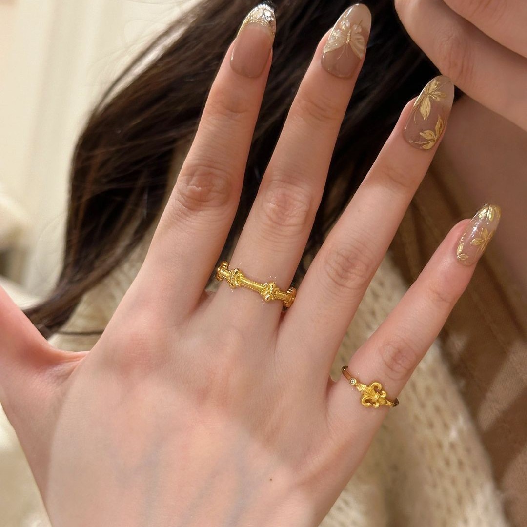 古法鸢尾花戒-金色