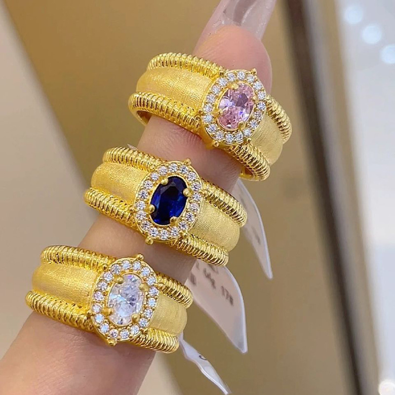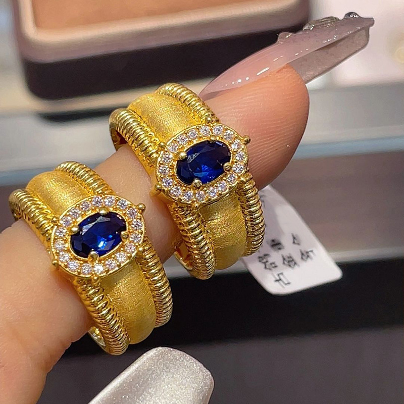 小红书爆款拉丝鸽子蛋戒指女中古vintage闪钻宽版排珠宫廷风指环