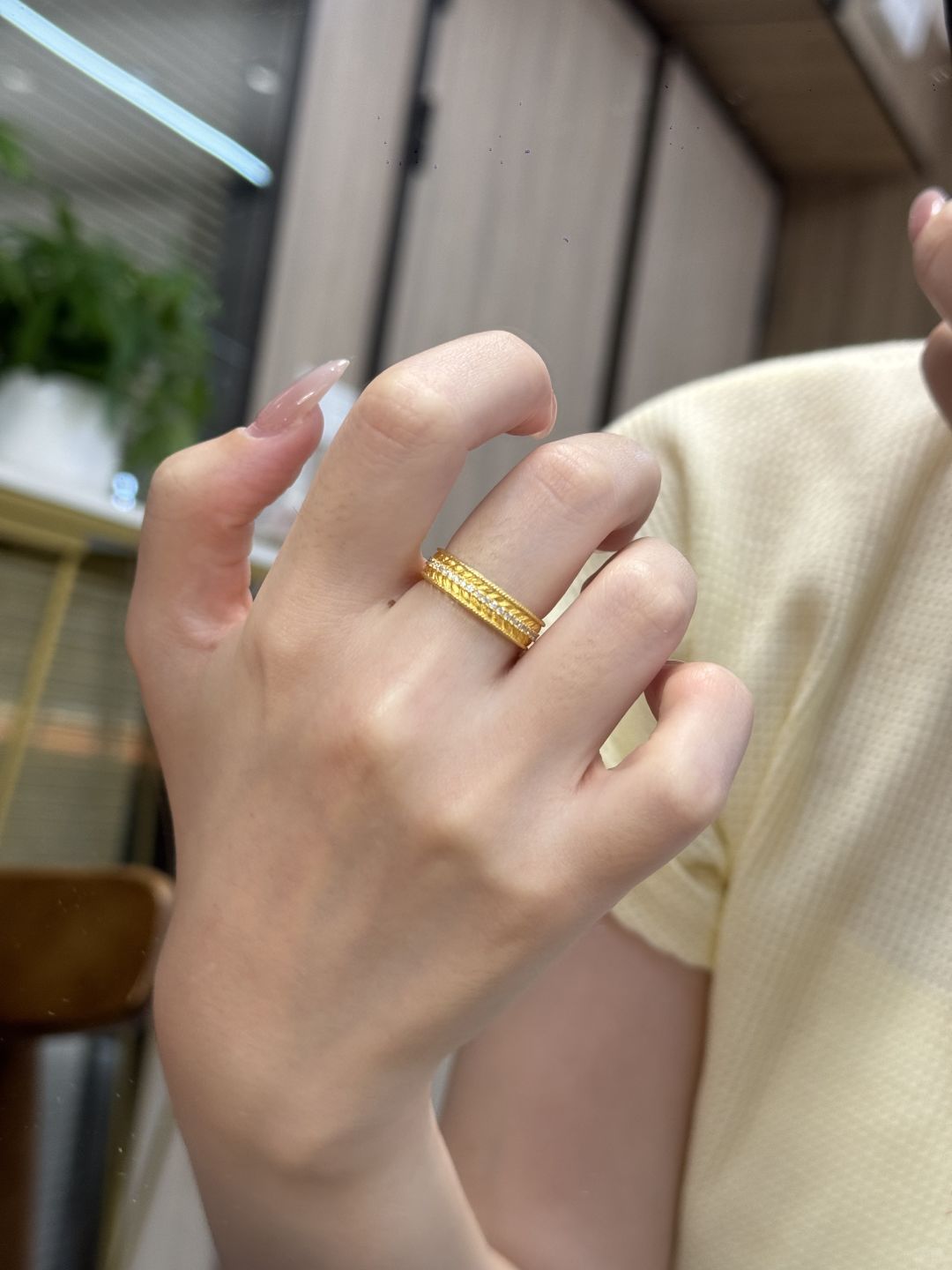 小红书爆款古法点钻麦穗戒指时尚轻奢莫桑钻戒新中式金色显贵指环