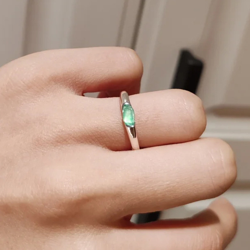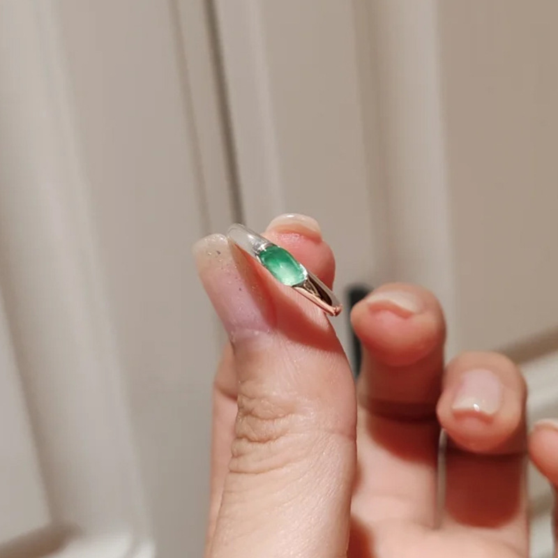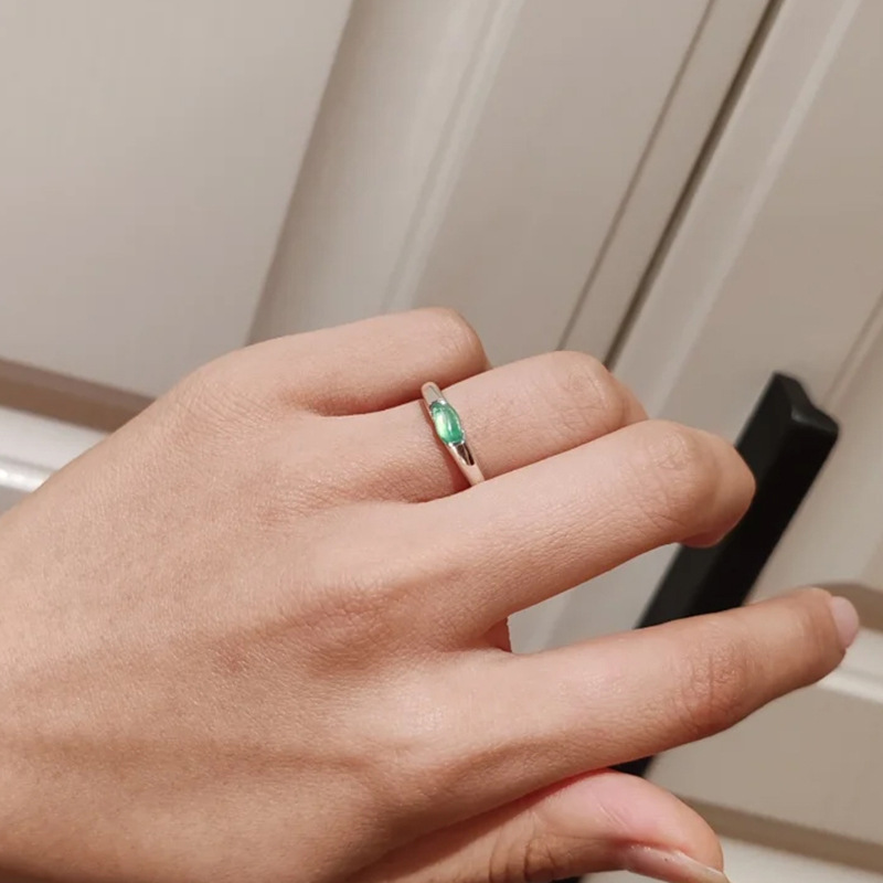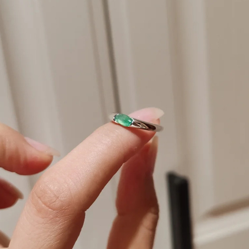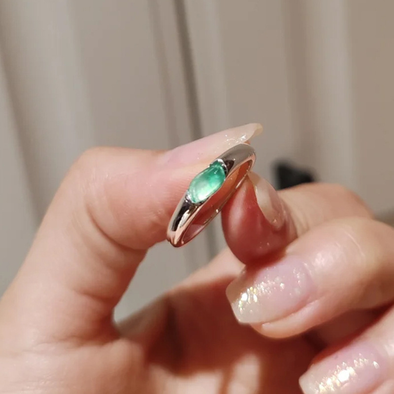 小红书爆款素圈非常招财戒2025古法银色精致绿宝石指环