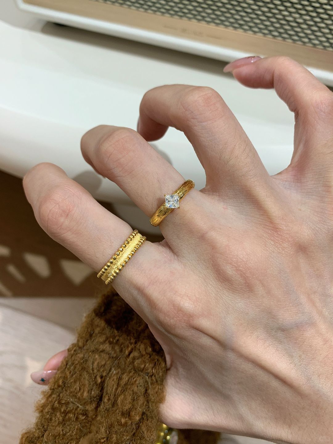 小红书爆款在逃公主方钻戒指女复古金色宫廷风新中式拉丝珠边指环