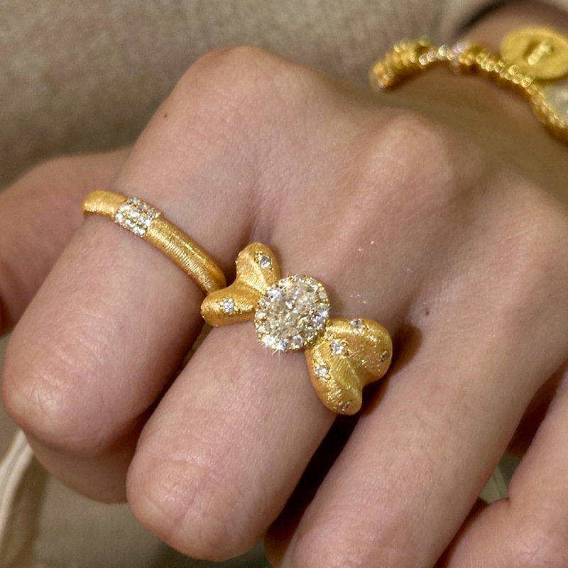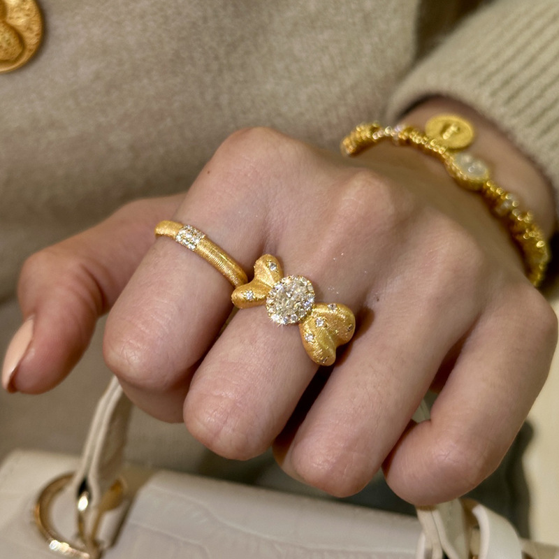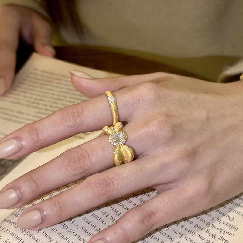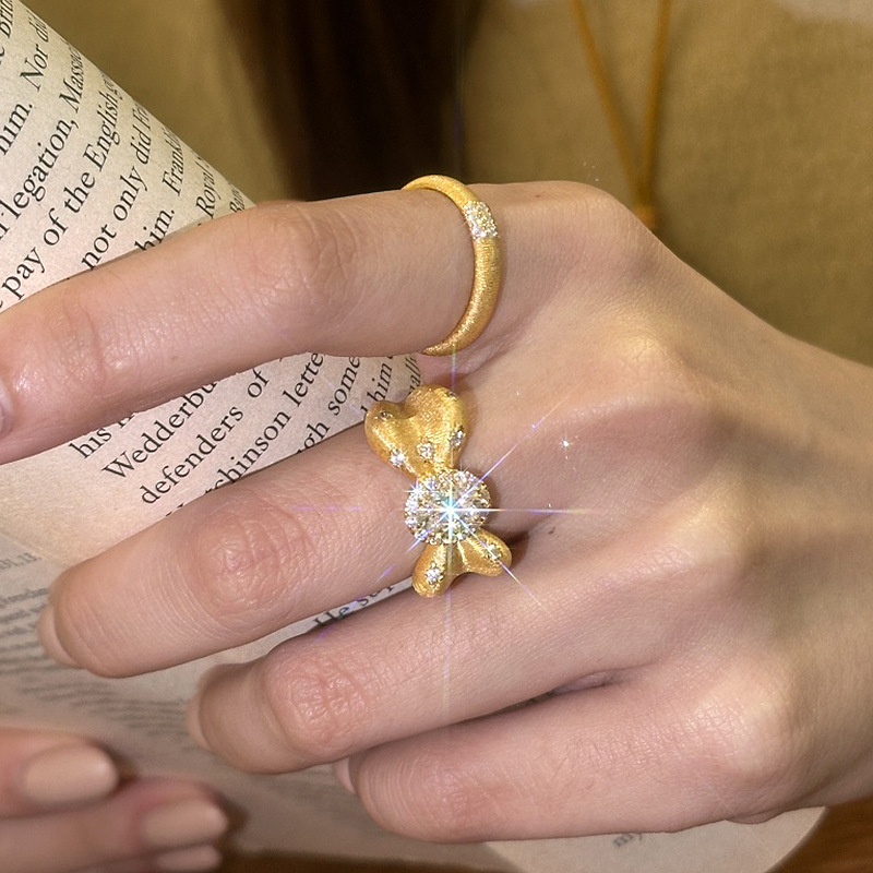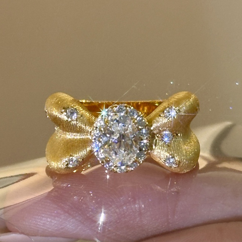 小红书爆款拉丝鸽子蛋戒指2025新款古法金蝴蝶结微镶指环一件代发