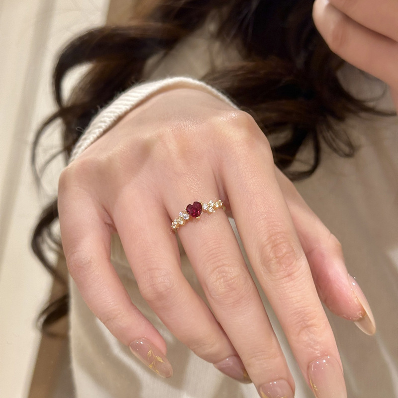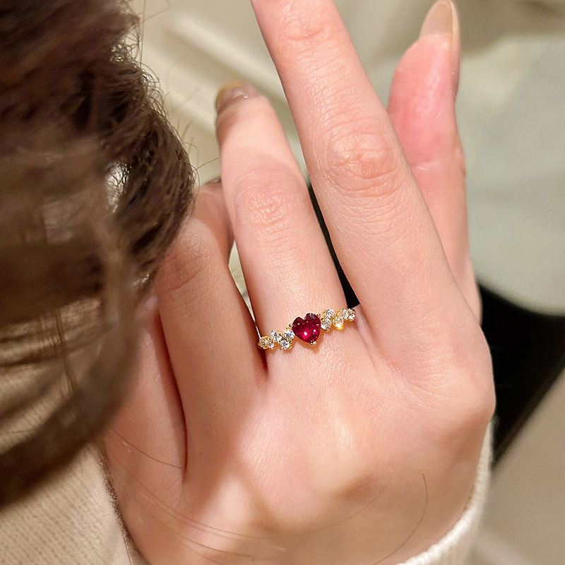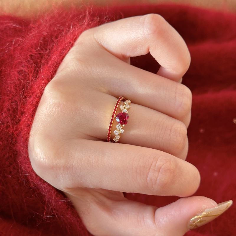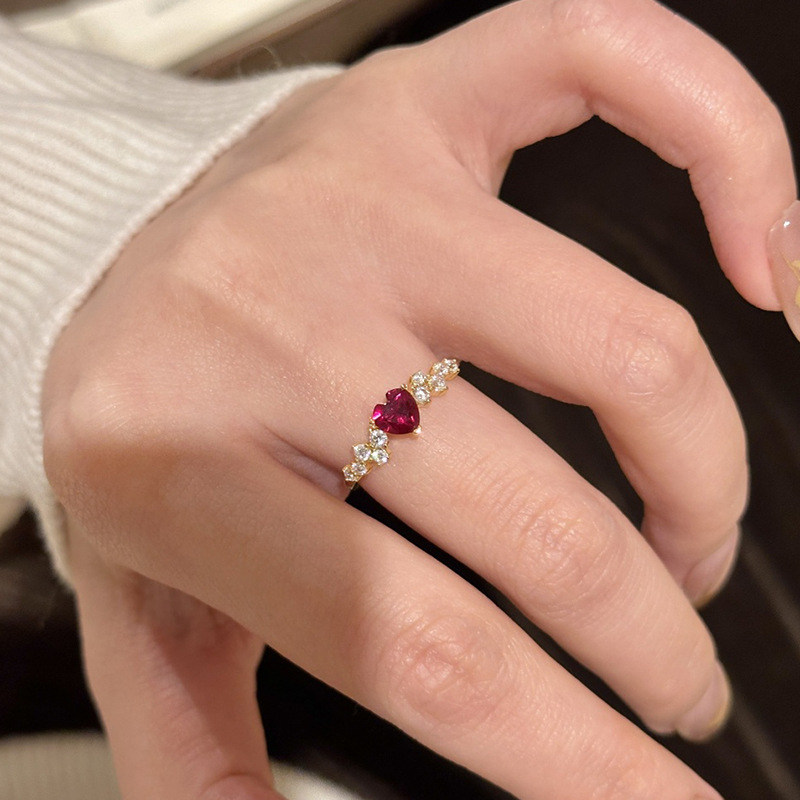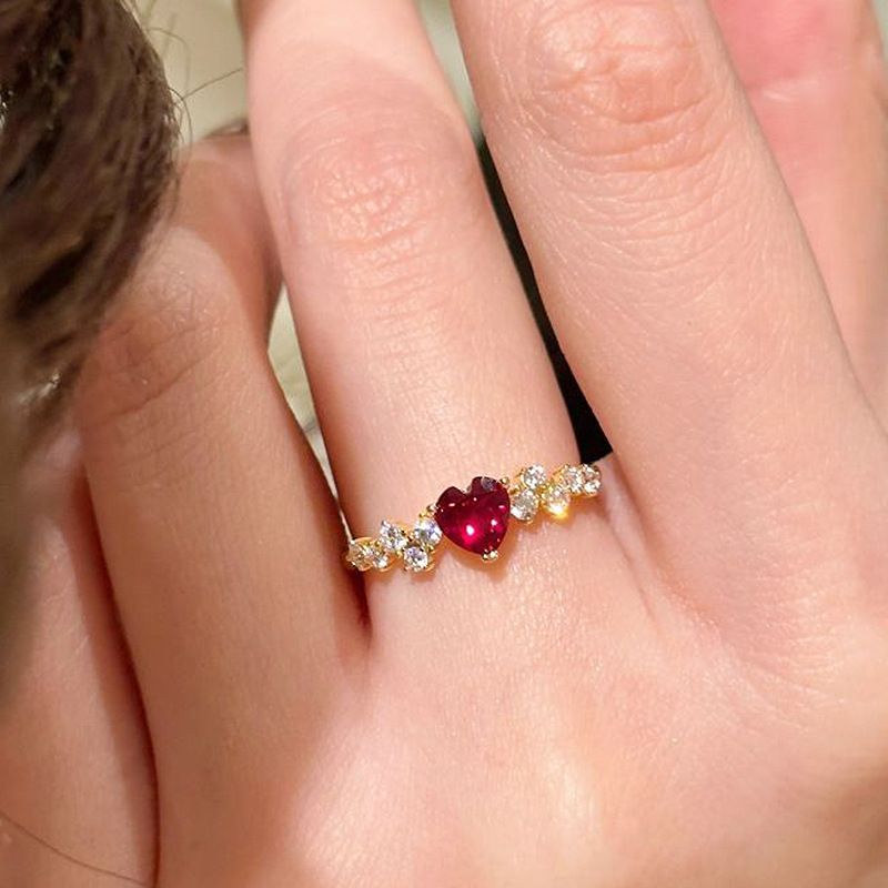 小红书爆款红钻爱心戒指2025新款爆闪满钻鸽血红心形指环