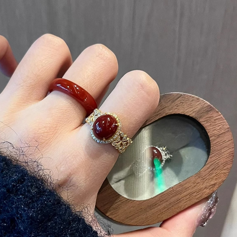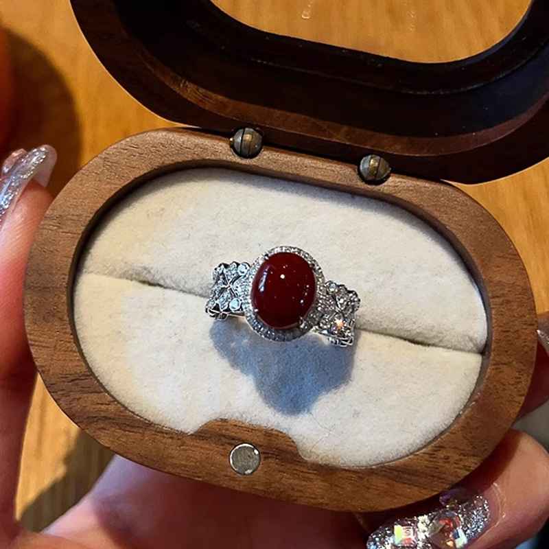 小红书同款南红佳人红宝石戒指2025新款时尚轻奢爆闪满钻精致指环