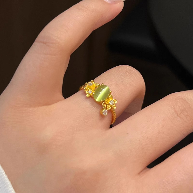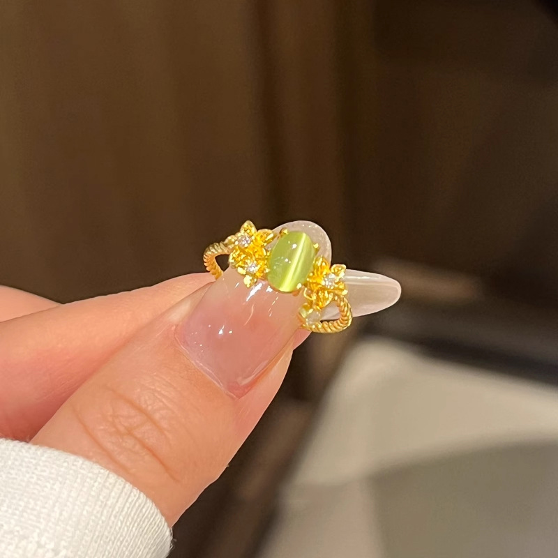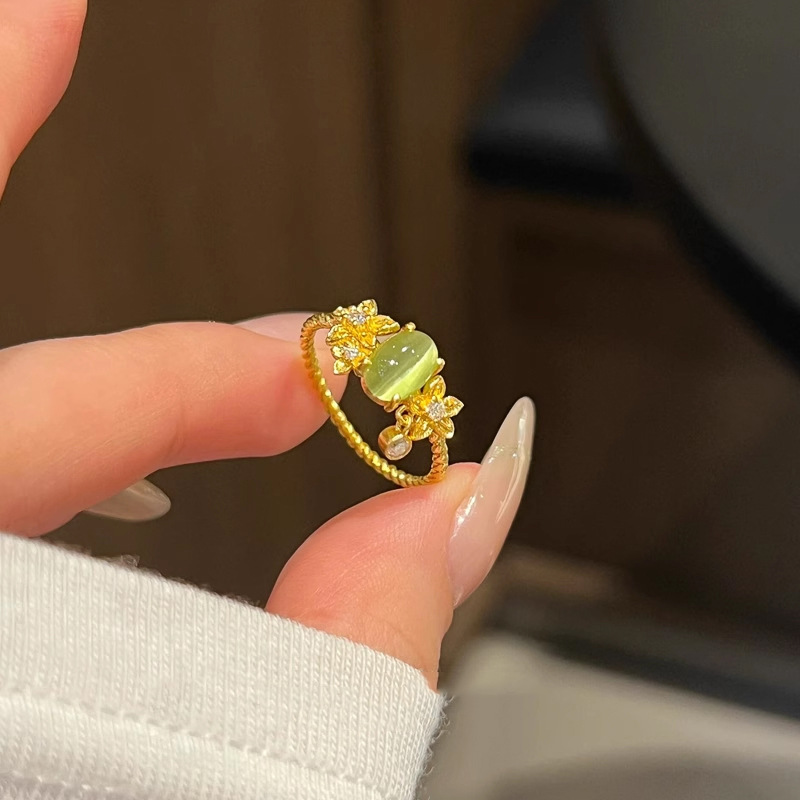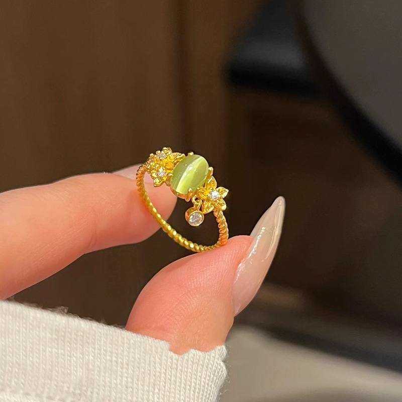 小红书爆款江南春色绿宝戒指2025新款绿猫眼石水滴指环一件代发