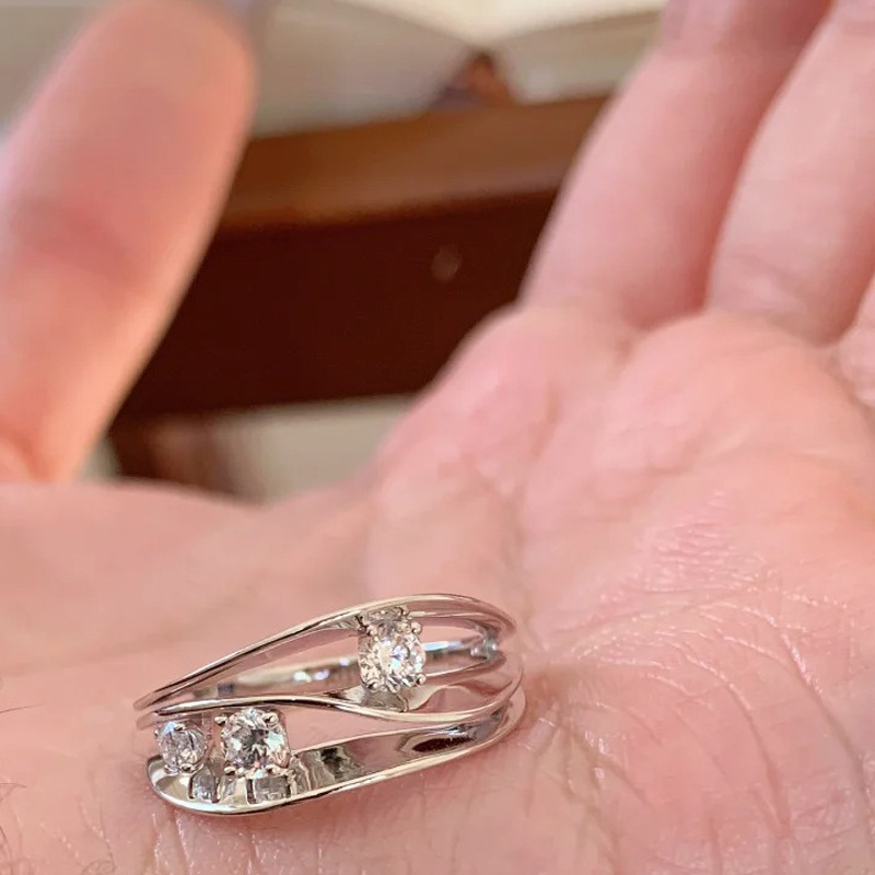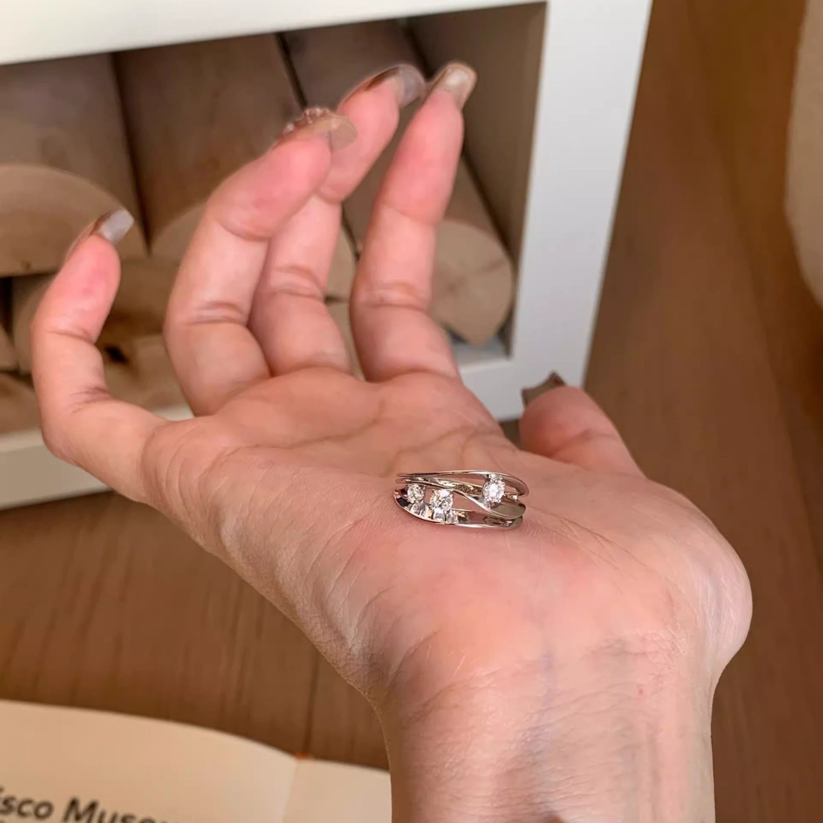 小红书爆款沙丘小钻戒三层闪钻戒指女新款简约叠戴微镶食指戒指环
