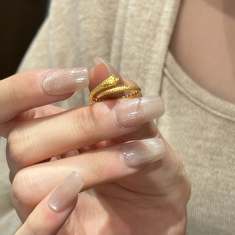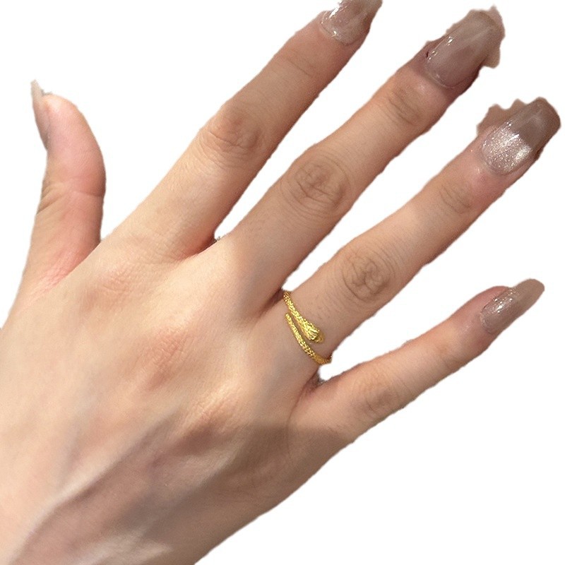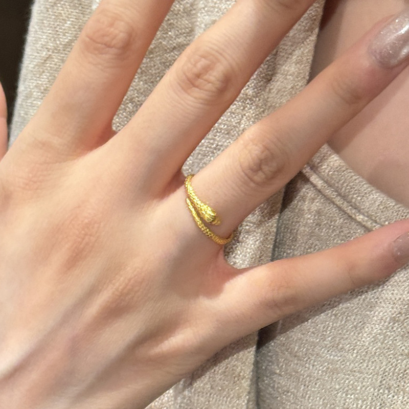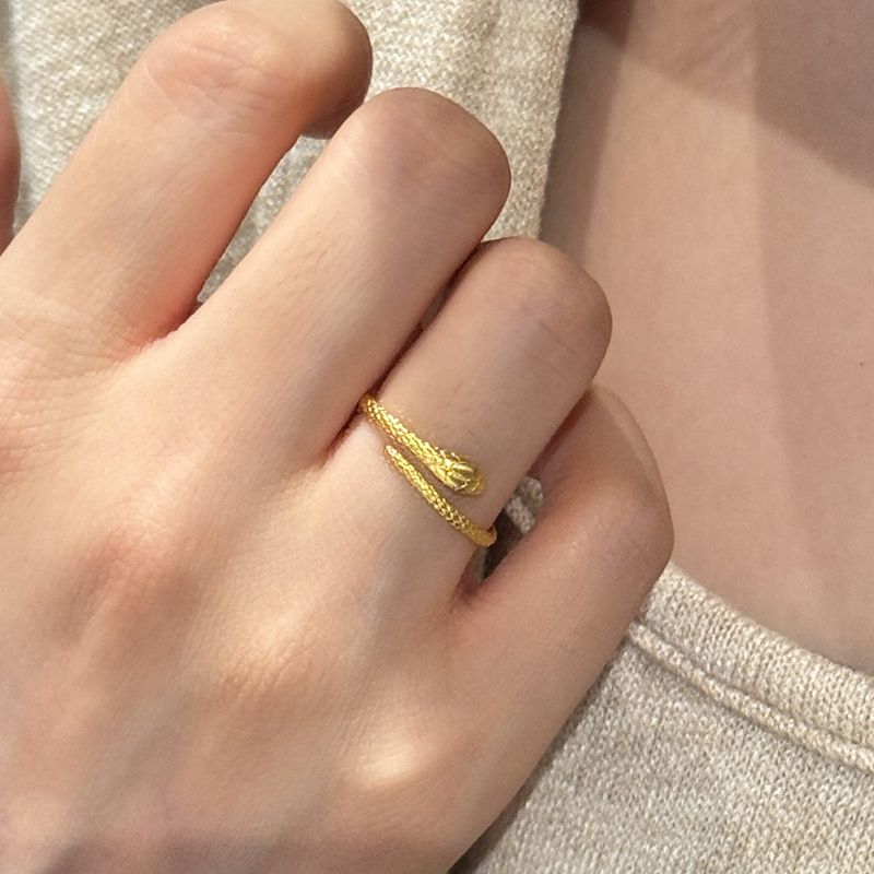 小红书爆款素金灵蛇戒指女新款中古风拉丝开口指环一件代发