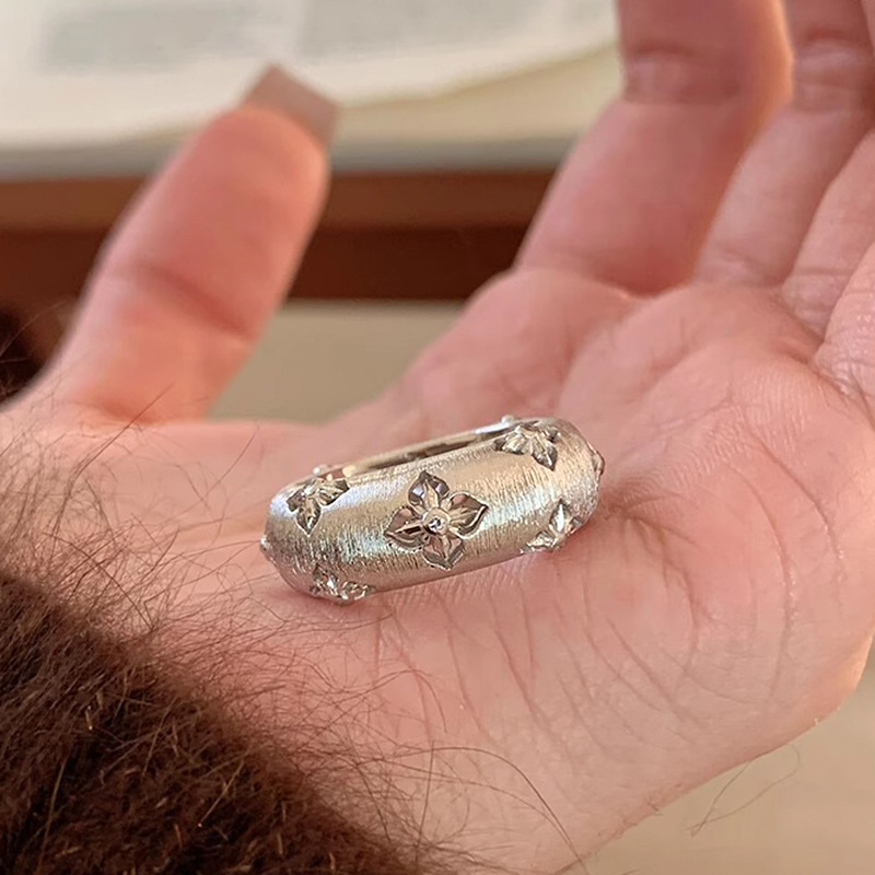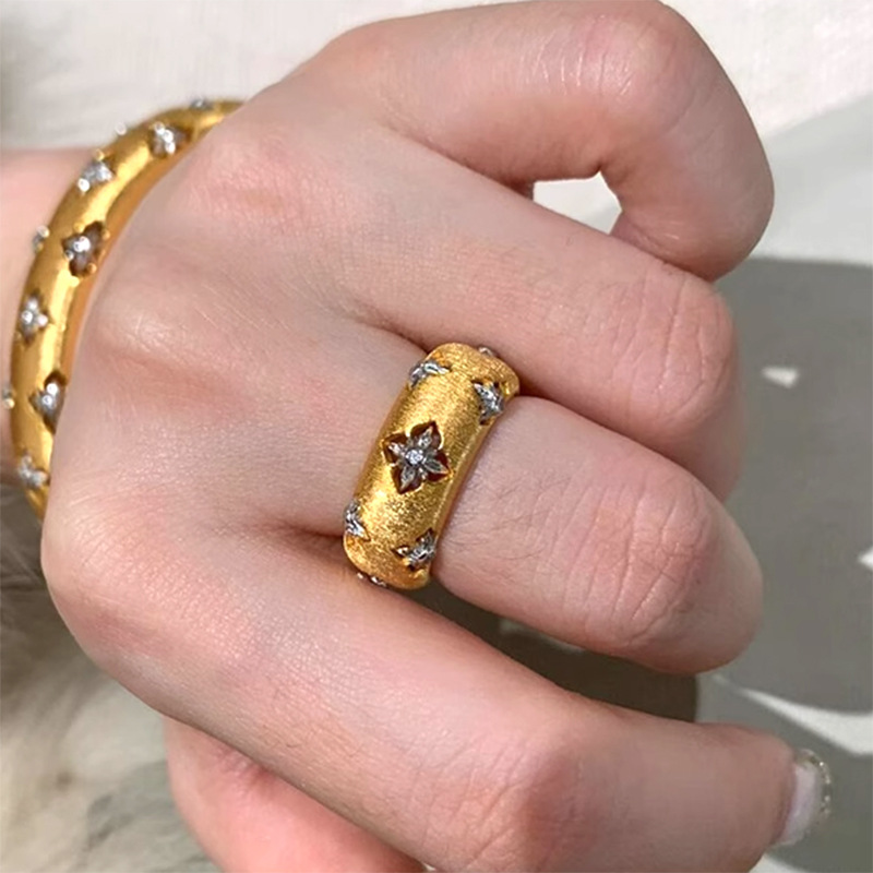 小红书爆款拉丝四叶草戒指2025新款古法重工星芒点钻指环一件代发