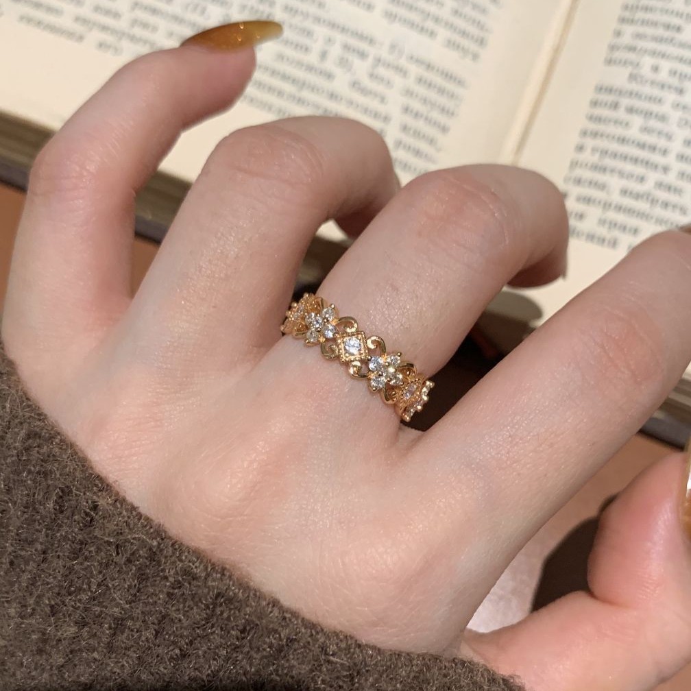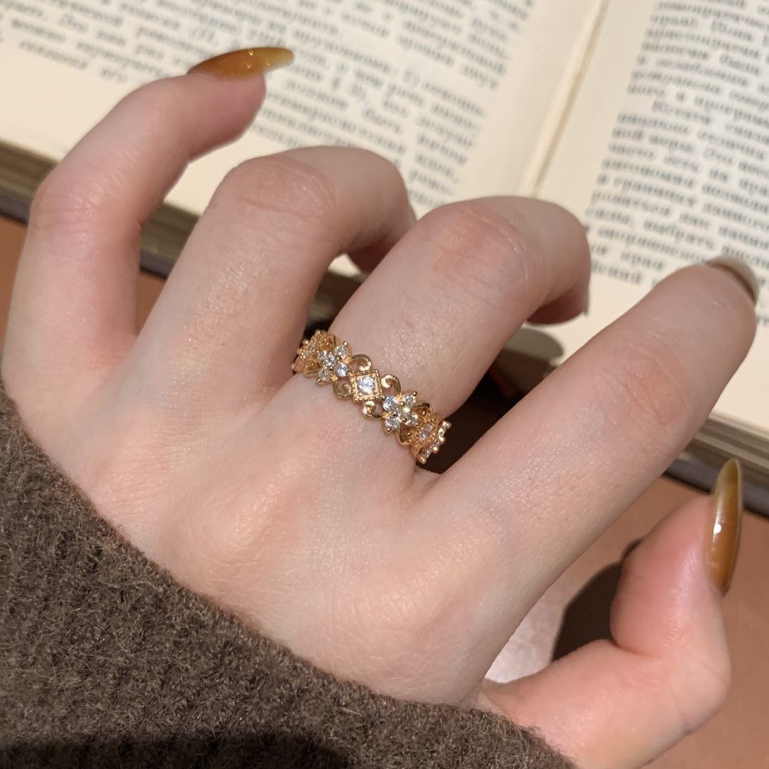小红书爆款古法闪钻鸢尾花戒指女轻奢高级感简约小众指环一件代发