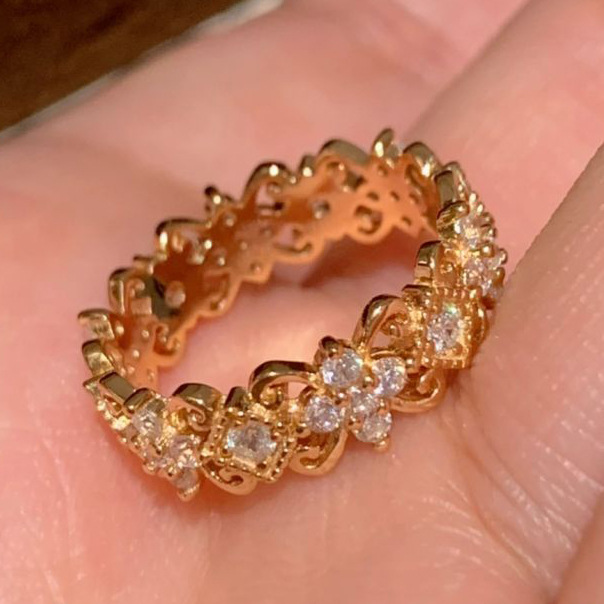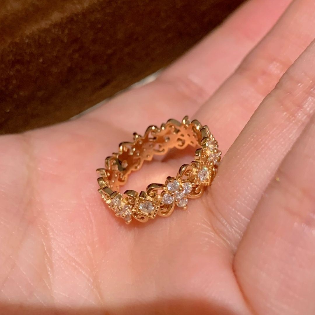 古着闪钻鸢尾花戒指金色(开口可调节)