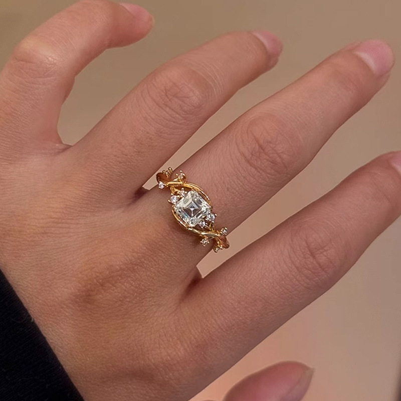 小红书爆款缠绕藤蔓方钻戒指2025新款时尚轻奢闪钻指环一件代发