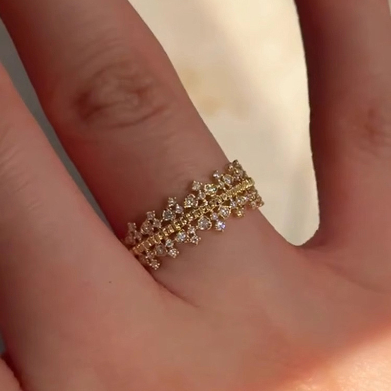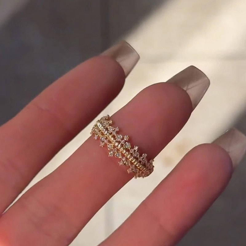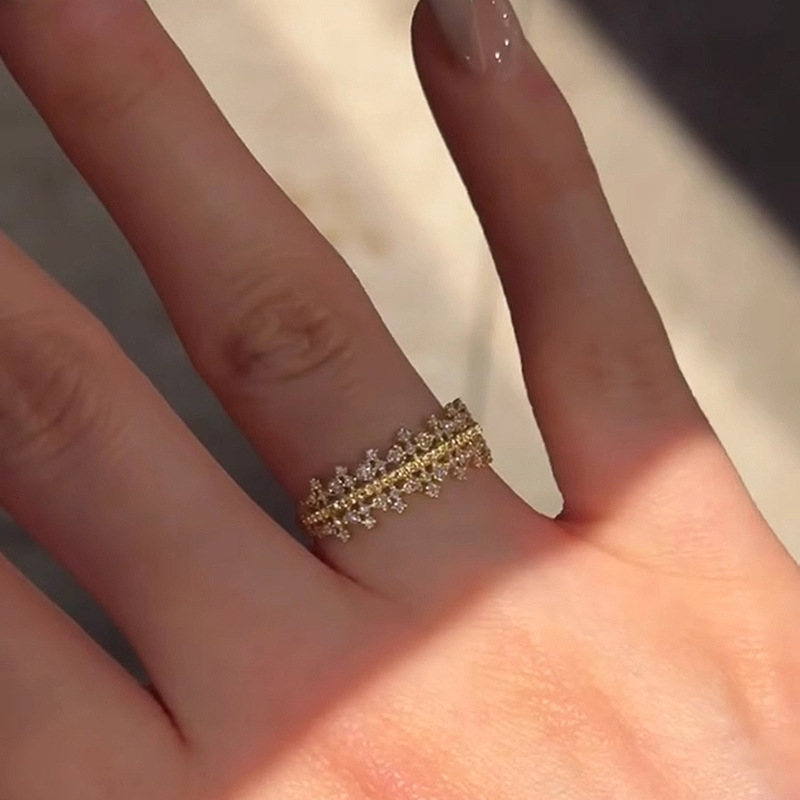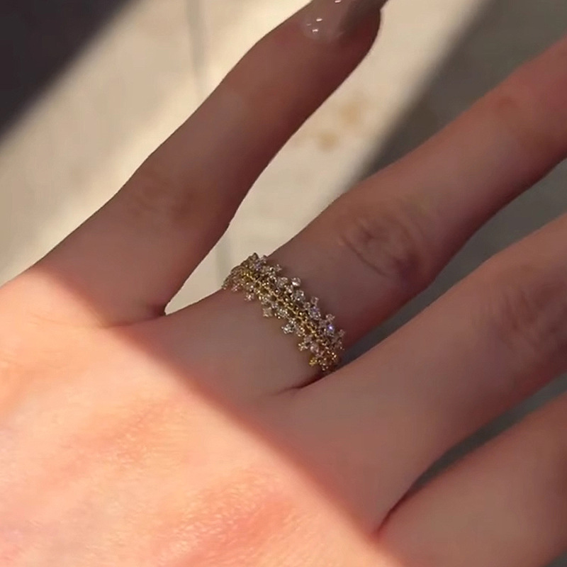 小红书同款在逃公主耀金蕾丝戒指2025新款时尚轻奢爆闪满钻指环女