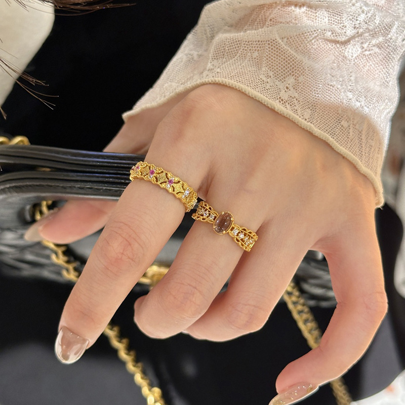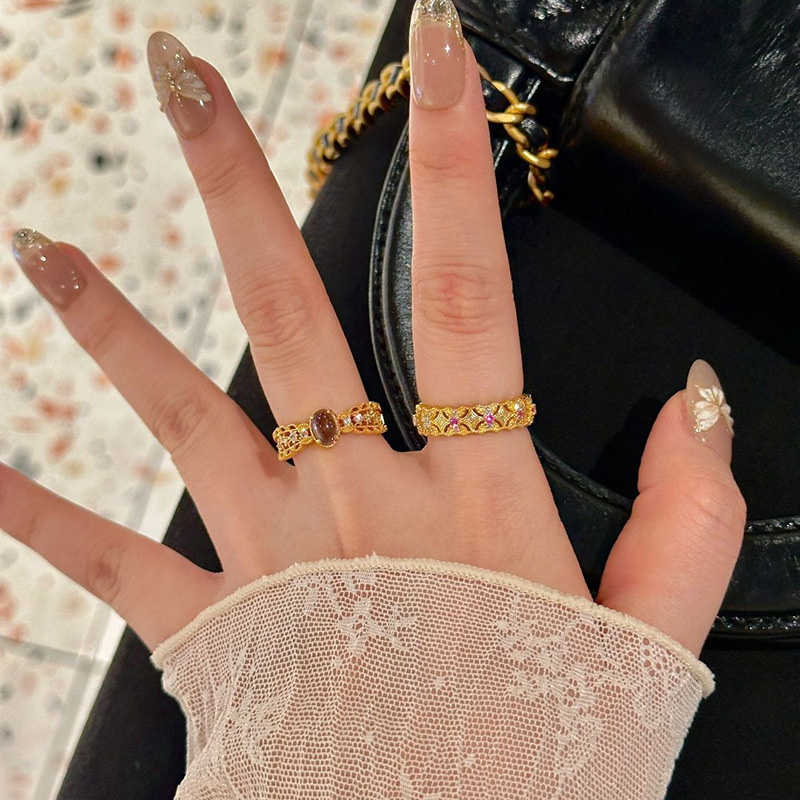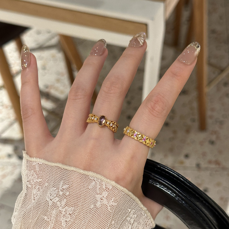小红书爆款古法紫水晶戒指女时尚轻奢高级感满满梦幻紫色拉丝指环
