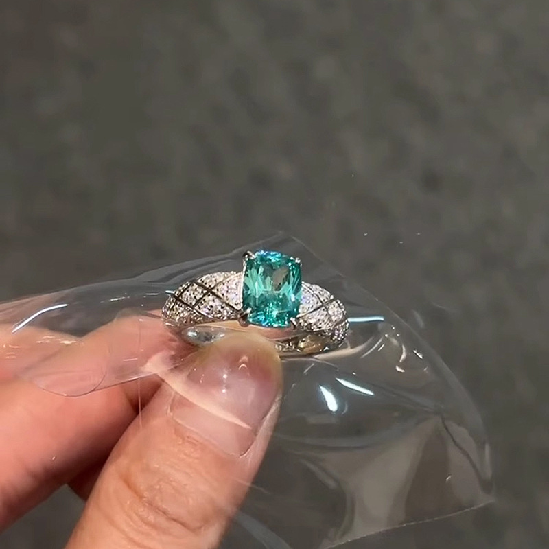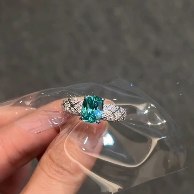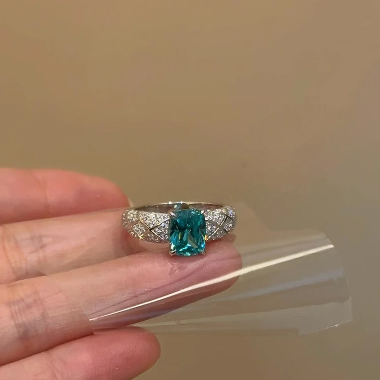小红书爆款璀璨星河满钻方钻戒指神秘宝蓝方糖钻戒指环一件代发女